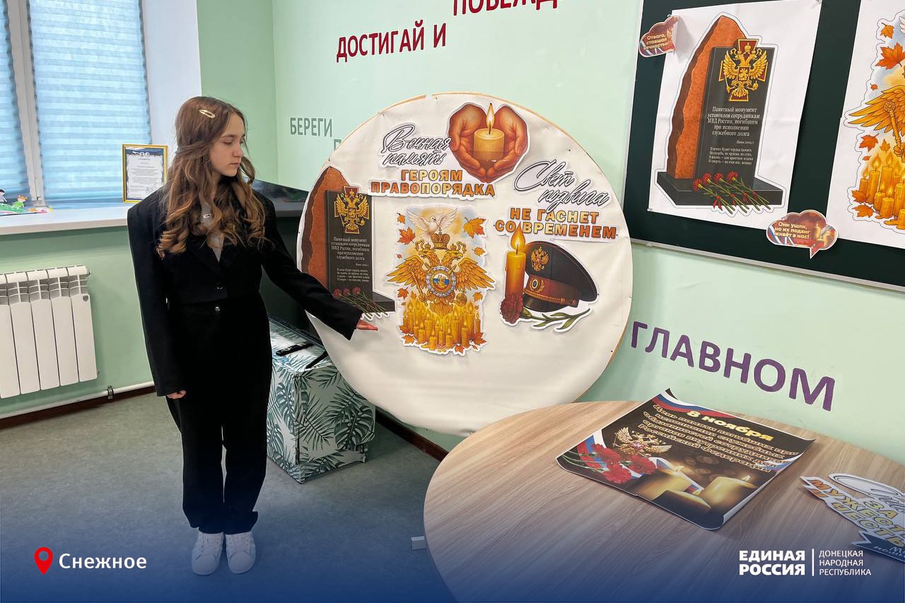 В Снежном прошёл урок мужества для учеников школы № 15, посвящённый Дню памяти сотрудников полиции, погибших при исполнении служебного долга. Ребята узнали об истории этой важной даты, услышали реальные истории о героизме и самоотверженности, обсудили, что значит настоящий подвиг и какими качествами должен обладать человек, выбравший путь служения закону.