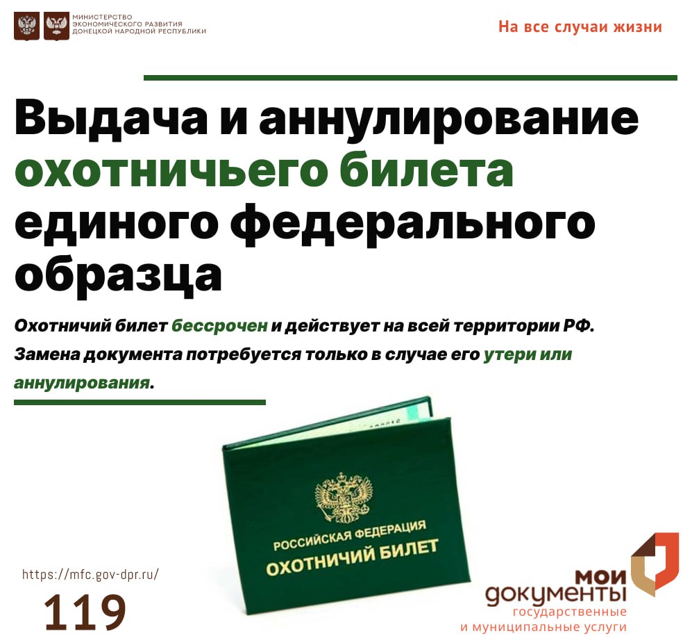 Выдача и аннулирование охотничьего билета единого федерального образца.