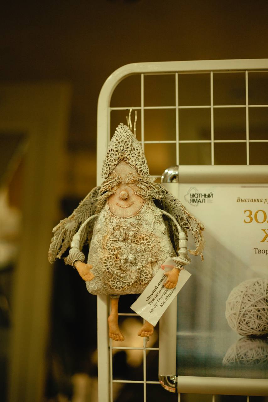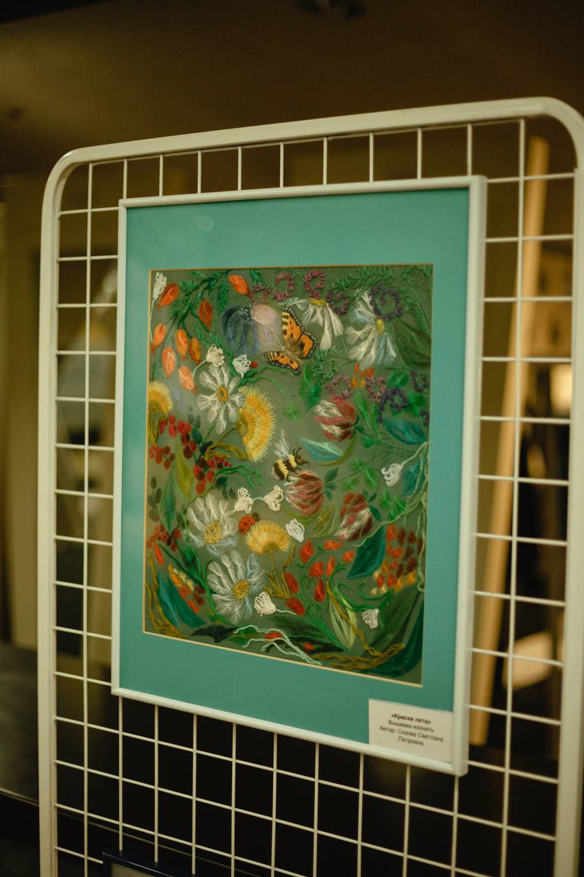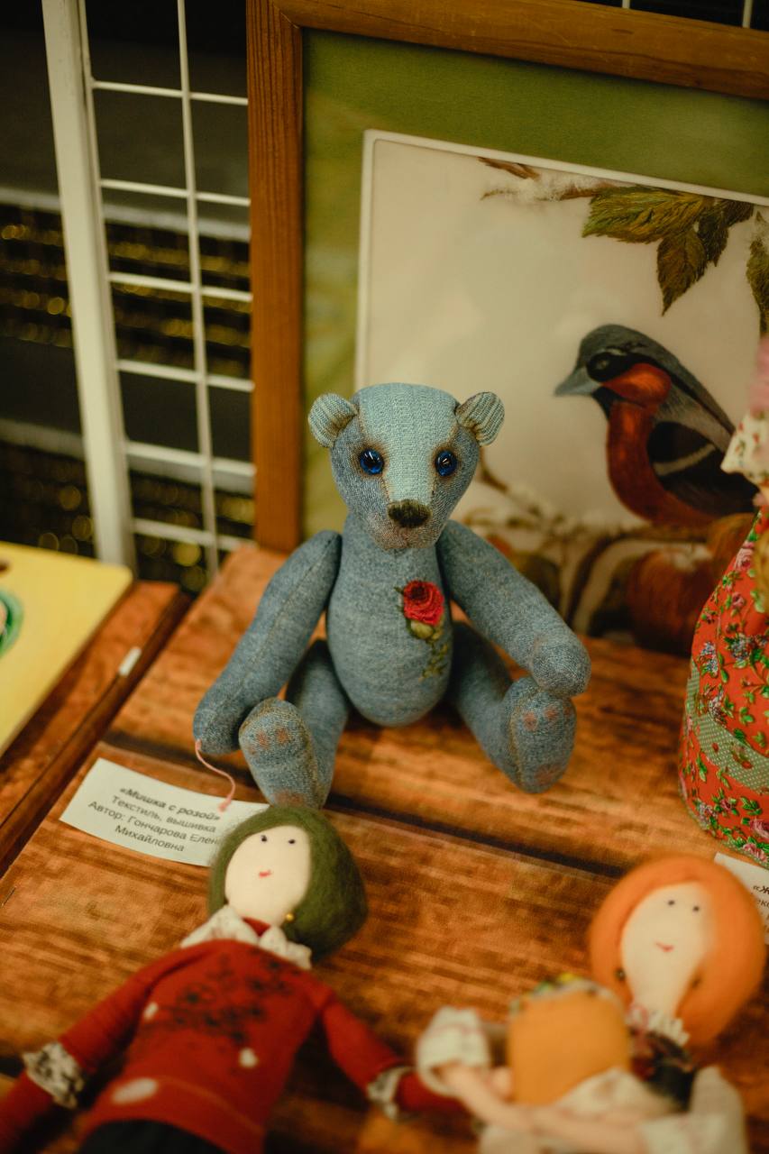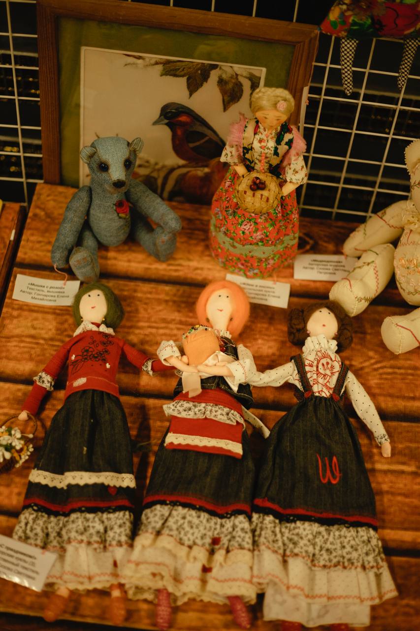 На выставке можно было приобрести десятки изделий ручной работы — вязаные игрушки, картины, украшения, предметы декора. Все вырученные средства направят на поддержку ребят из Донбасса.