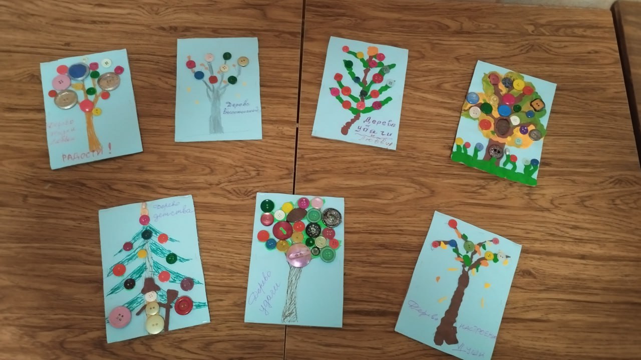На мастер-классе подопечные Центра создавали волшебное дерево из пуговиц, используя для этого сами пуговицы, цветной картон и пластилин.