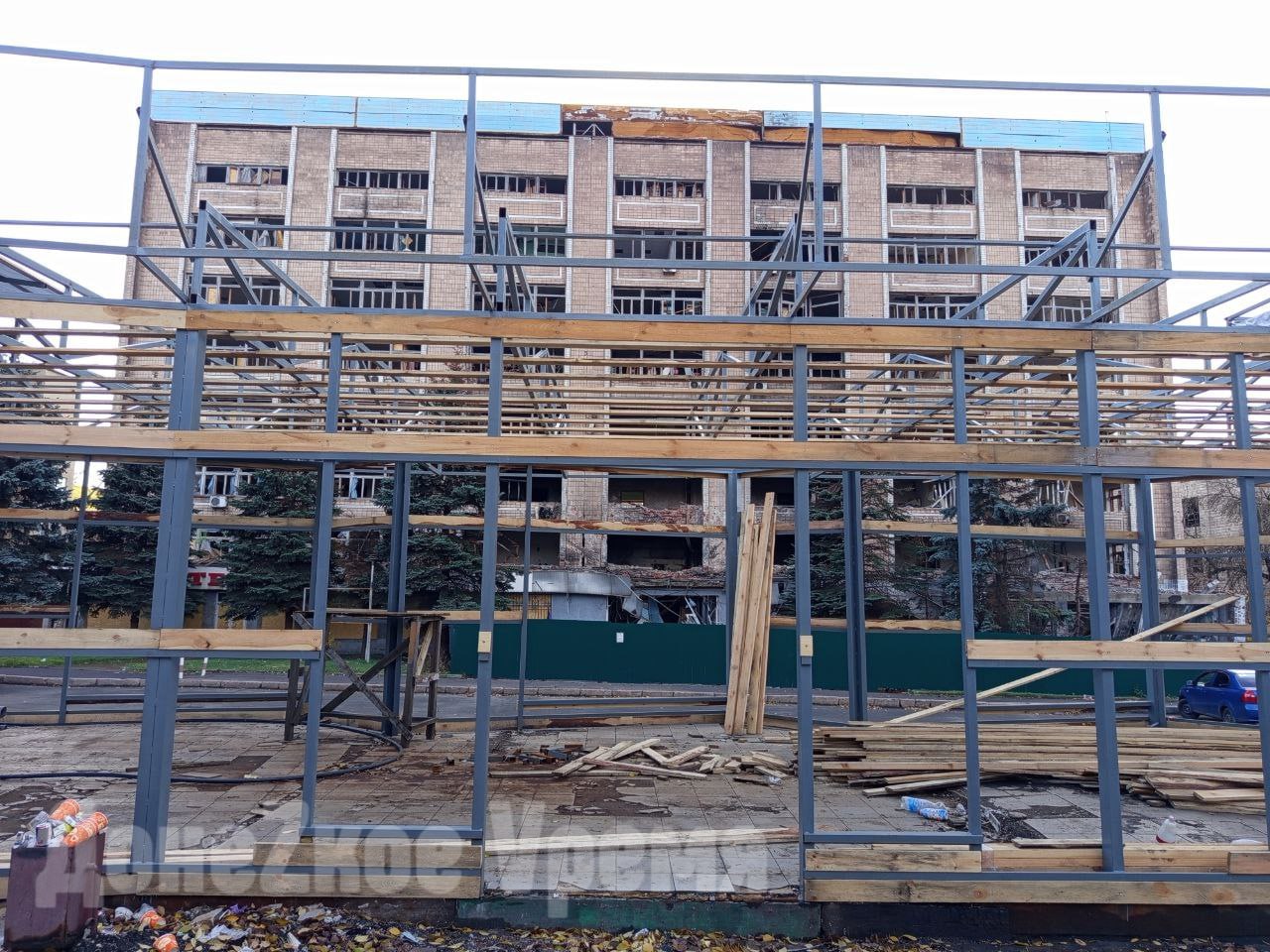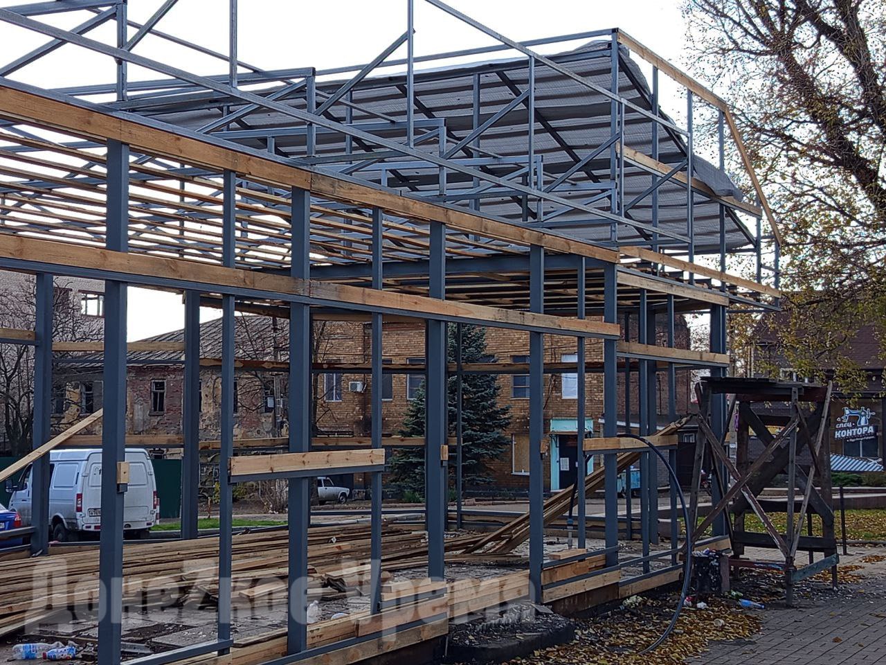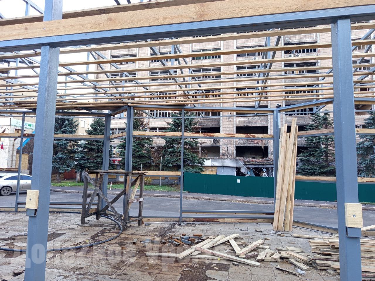 Стройка кипит: в Донецке возле ЦУМа восстанавливают разрушенные торговые павильоны