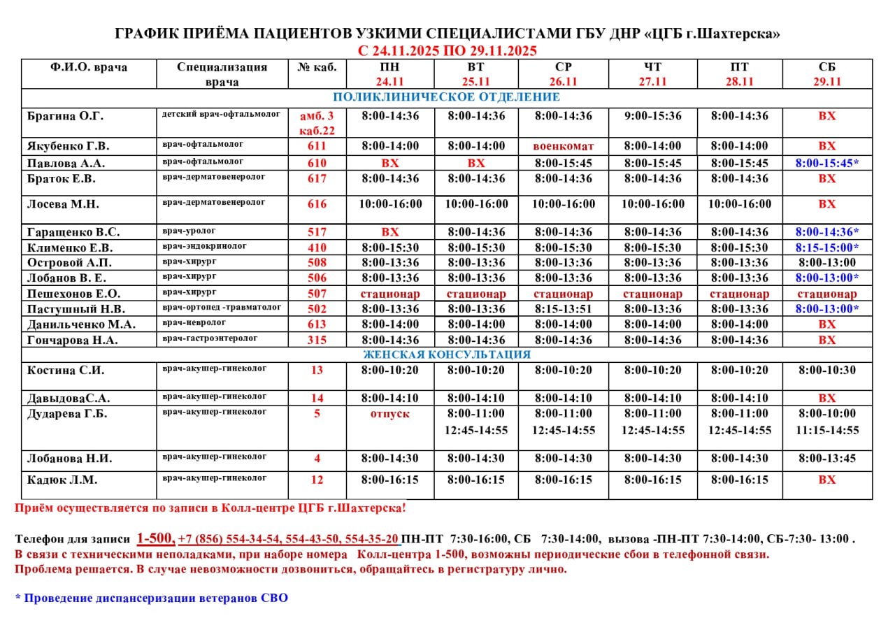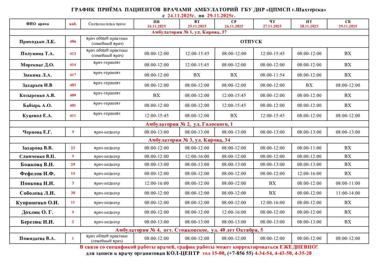Александр Шатов: ВниманиеИнформация о графике приемов врачами и врачами-педиатрами