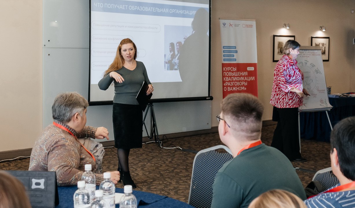 Во всех регионах России продолжается обучение на курсах повышения квалификации для педагогов и управленцев, которые реализуют внеурочный курс «Разговоры о важном». Программу организует Институт изучения детства, семьи и воспитания под патронажем Министерства просвещения РФ.