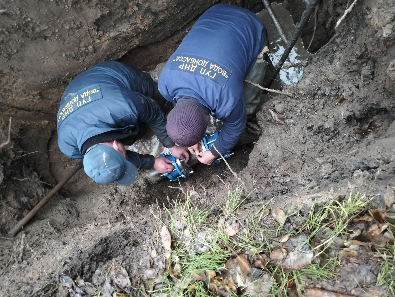 выполнены работы по восстановлению участка водопроводной сети путем установки хомута по ул. Первомайская 163 пос. Тельманово;
