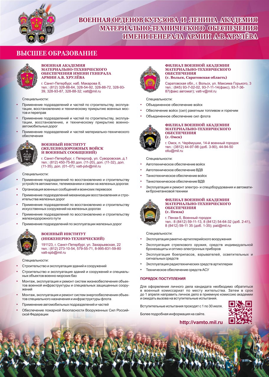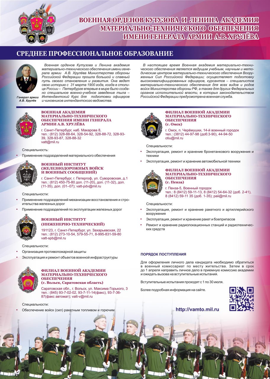 Военная академия материально-технического обеспечения имени генерала армии А.В. Хрулёва приглашает абитуриентов