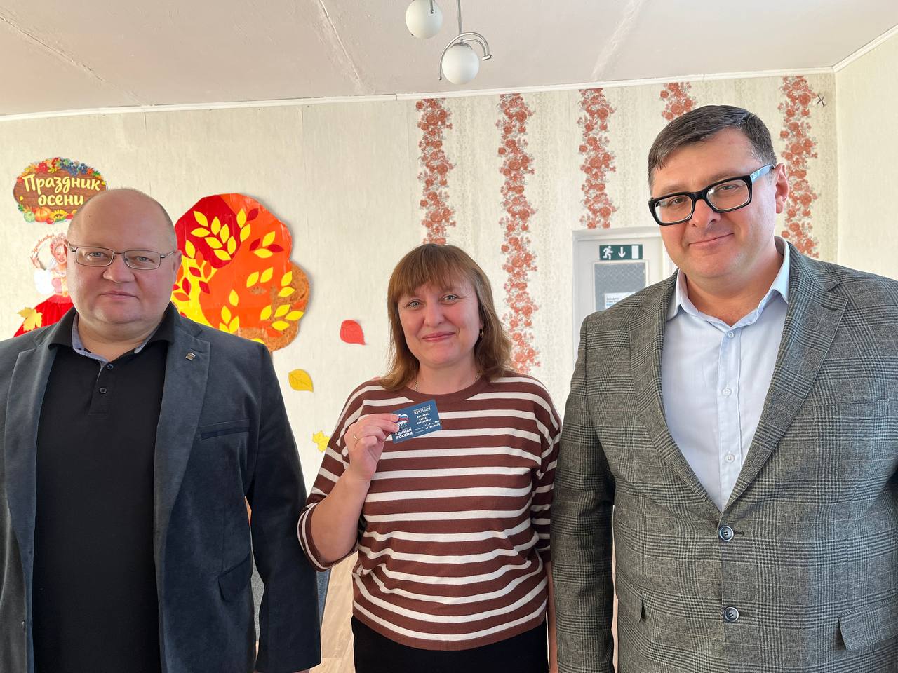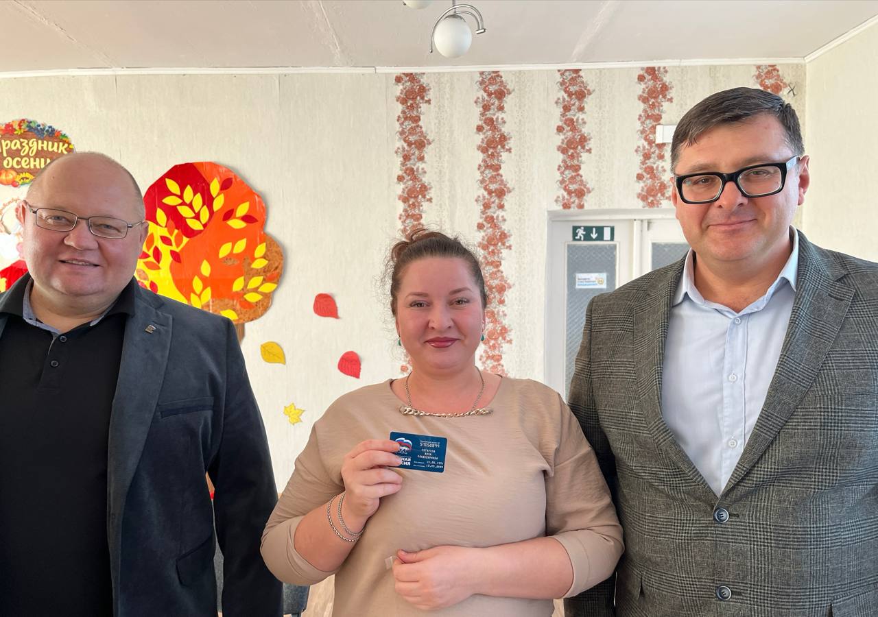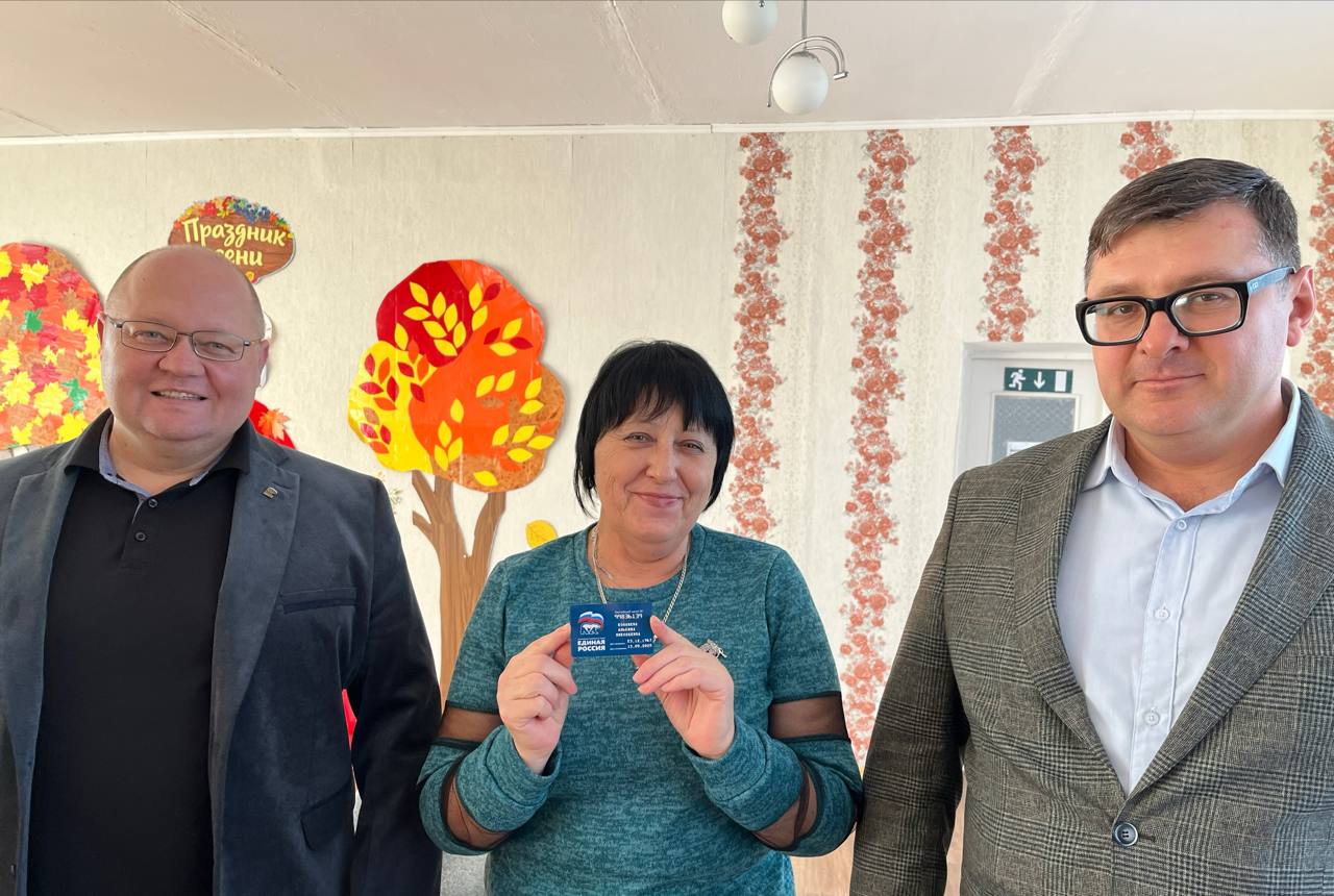 Сегодня глава Новоазовского муниципального округа, секретарь партии «Единая Россия» Василий Овчаров совместно с заместителем председателя местного муниципального совета Алексеем Сухаревским продолжили важную миссию и вручили членские билеты политической партии активным гражданам муниципалитета, продолжающим вступать в ряды ведущей политической силы страны, — прекрасным представительницам дружного коллектива Новоазовского детского сада № 6 «Ласточка».