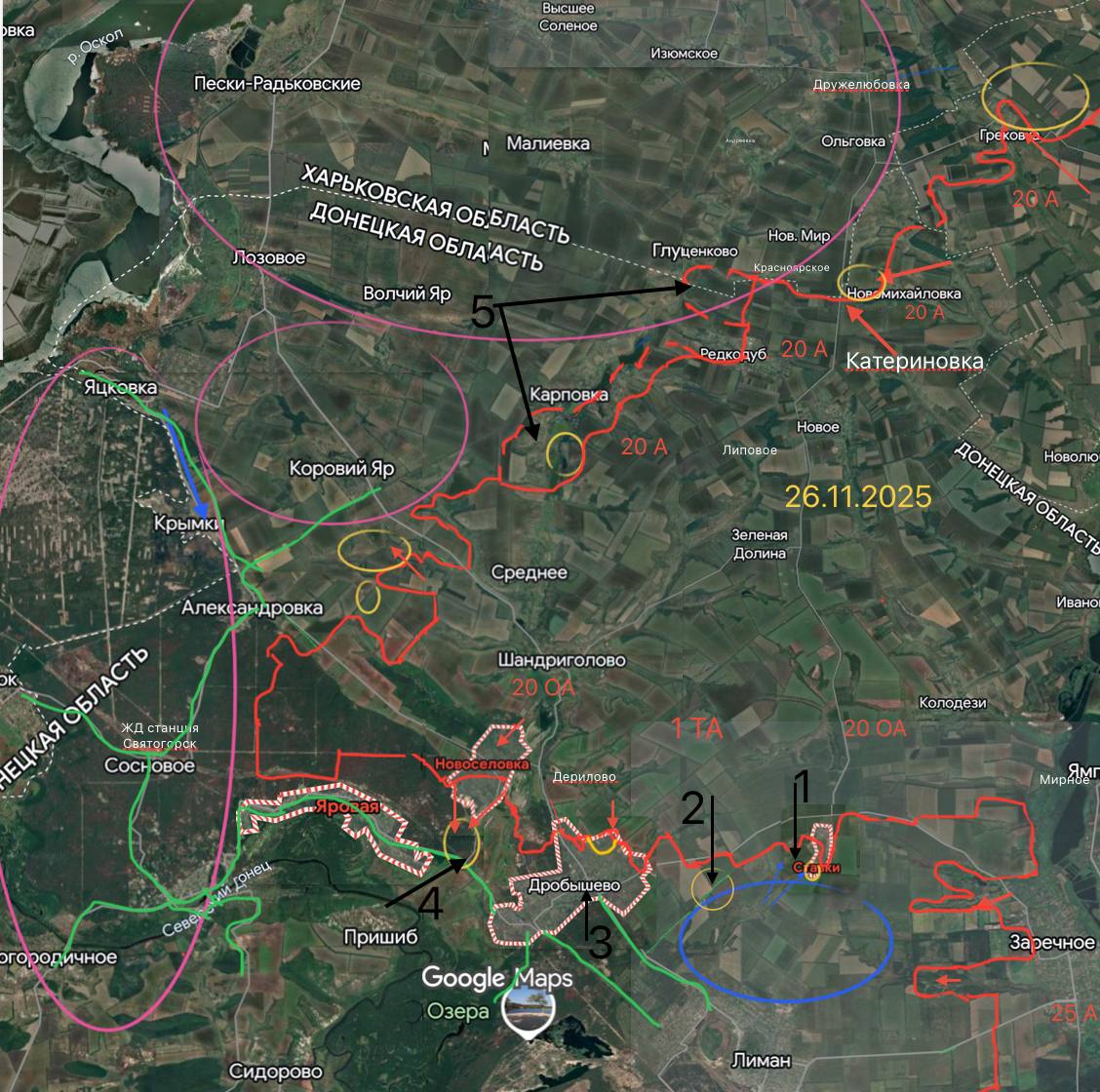 2. Идут боевые действия в районе зверохозяйства Красного Лимана, также противник используя яр, пытается по нему пробираться к Ставкам