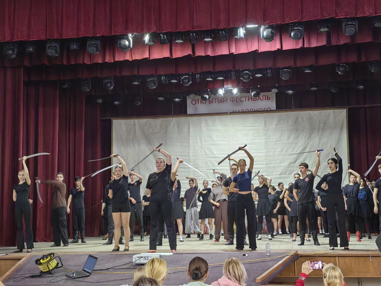 Но на этом фестиваль не закончился. После небольшого перерыва на сцене прошел мастер-класс для участников коллективов от балетмейстера Киреевского Городского Дома Культуры Тульской области, руководителя «Народного хореографического коллектива «Фьюжн» Светланы Владимировны Королевой на тему «Фланкировка шашкой, как неотъемлемая часть казачьей культуры». Девчонки и мальчишки с большим удовольствием познакомились с фланкировкой. Кто-то изучил азы, а кто-то пополнил свои знания в этом деле.