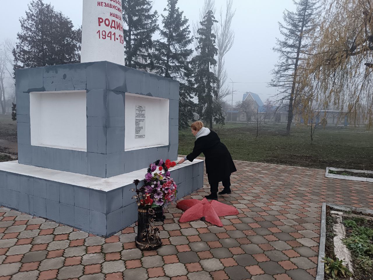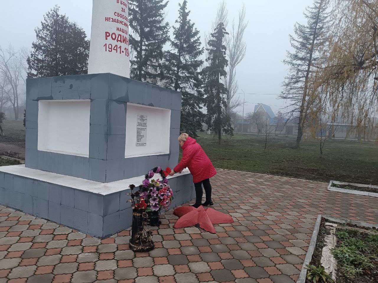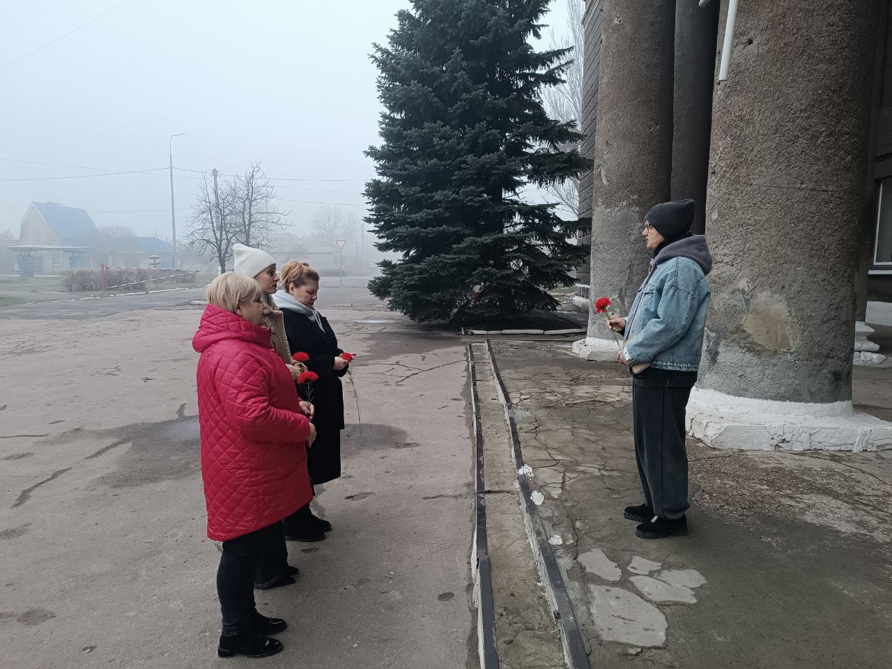 На площади Углегорского центра культуры и досуга прошло торжественное возложение цветов к памятнику павшим героям.