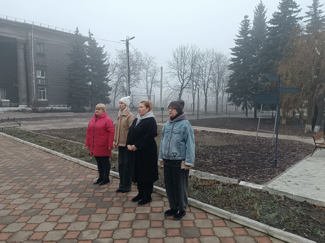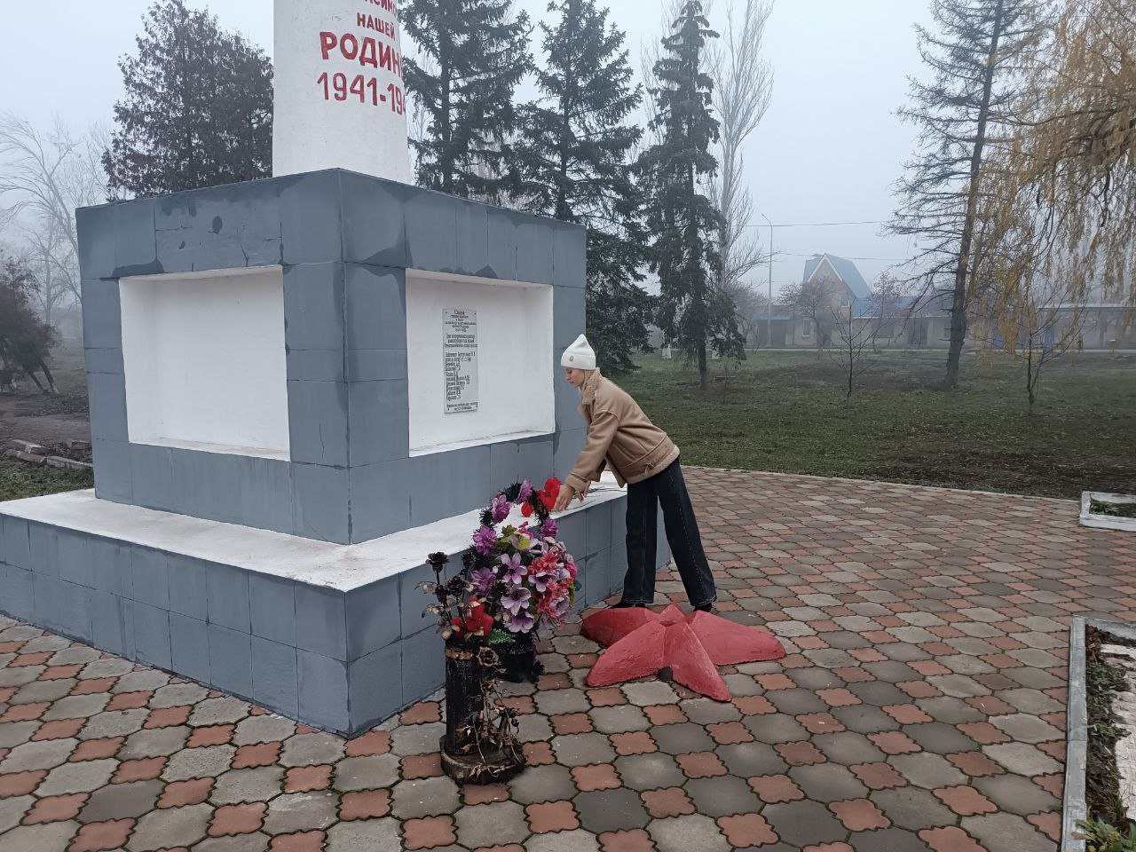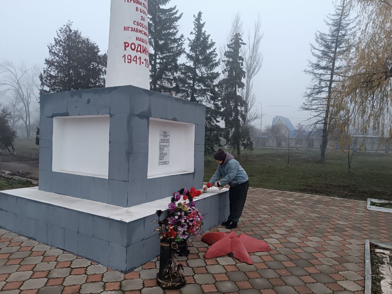 На площади Углегорского центра культуры и досуга прошло торжественное возложение цветов к памятнику павшим героям.