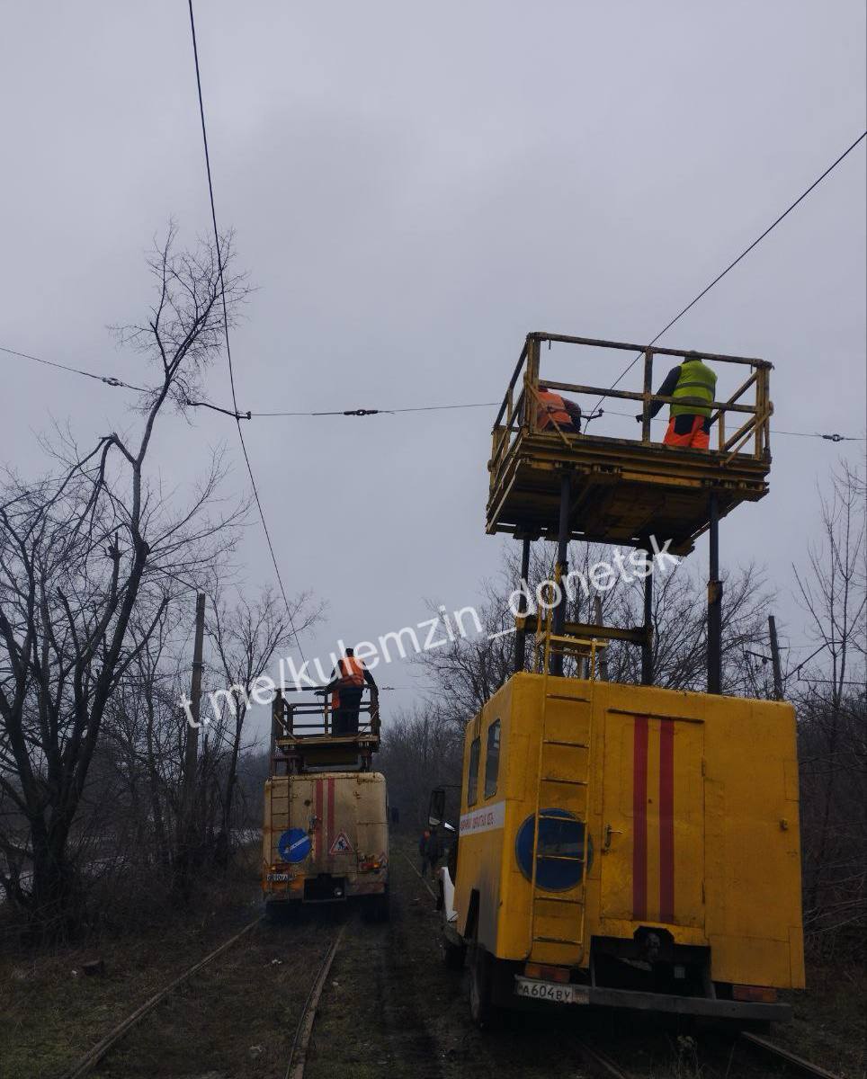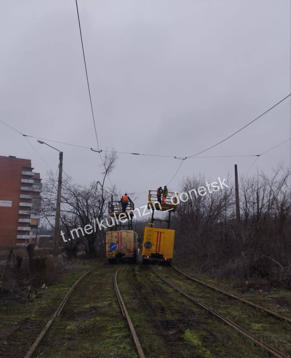Специалисты предприятия «Донэлектроавтотранс» продолжают восстанавливать контактную сеть трамвайного маршрута № 16.