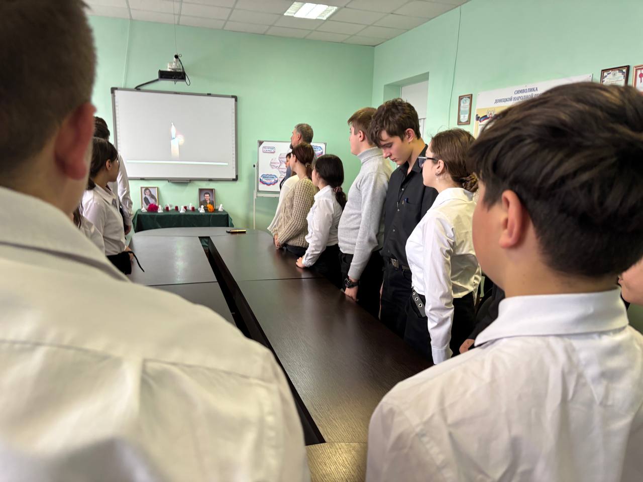 Сегодня, 8декабря 2025 года, в ГБОУ « Школа № 3 г.о. Дебальцево» прошёл час памяти «С болью в сердце», в рамках Всероссийской акции #Спасибо_Героям, #Мой_земляк_Герой, приуроченной к празднованию Дня Героев Отечества. Три года — целая вечность и миг одновременно. Ровно три года назад, 6 декабря 2022 года, от украинского обстрела Донецка погибла Мария Владимировна Пирогова.