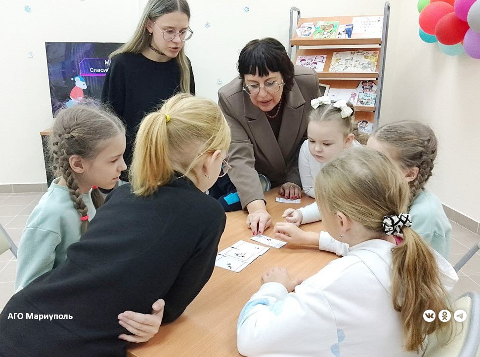 А в детской библиотеке им. Н.Н. Носова юные мариупольцы приняли участие в игровой программе «Зимние виды спорта».