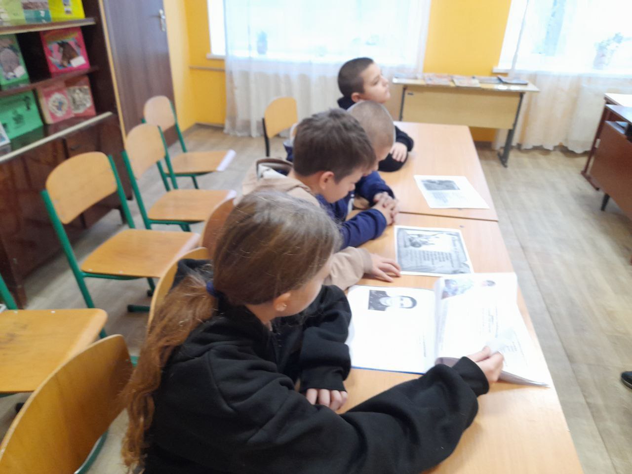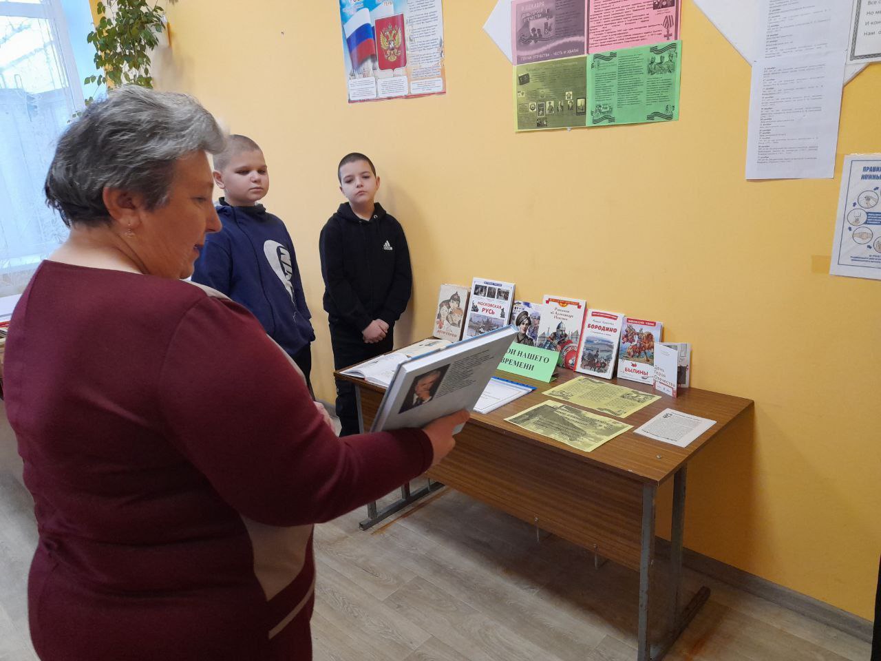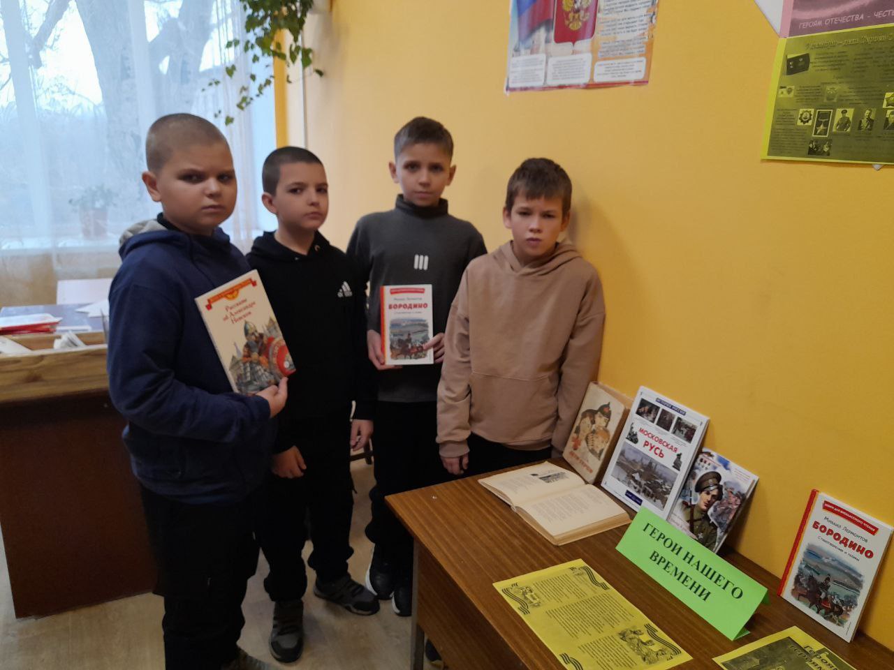 В. Катаева «Сын полка», сборник «Дети-герои», Л.Кассиля «Володя Дубинин», «Улица младшего сына»,"Рассказы о Александре Невском",Былины, М.Ю.Лермонтов "Бородино", А.Лиханов"Мой генерал" и другие произведения известных писателей. А также учащиеся посмотрели презентацию о героях Отечества.Читатели узнали о Георгии Победоносце, об утверждении Екатериной II ордена Святого Георгия, познакомились с героями нашего Отечества: