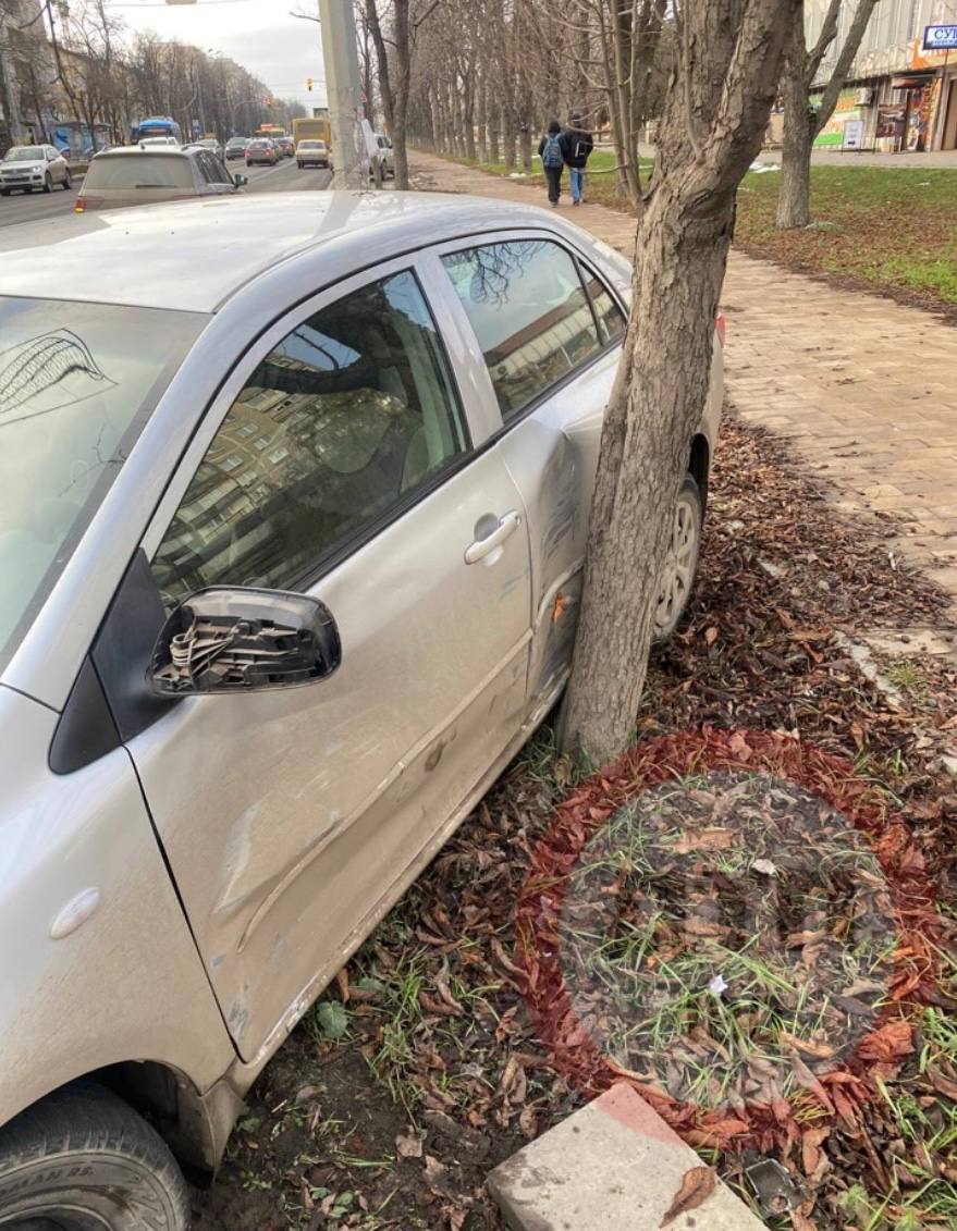 Водитель автомобиля Toyota при перестроение не убедился в безопасности и совершил столкновение с автомобилем Mercedes ,после чего автомобиль Toyota выкинуло за приделы проезжей части в дерево.