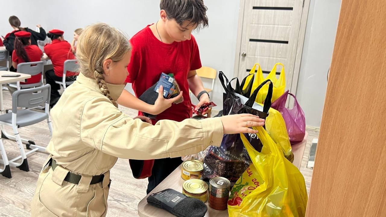 В преддверии новогодних праздников ребята объединились для сбора гуманитарной помощи для тех, кто стоит на защите нашей Родины. Они с большим воодушевлением наполняют коробки необходимыми вещами. В них помещают продукты длительного хранения, гигиенические средства, медикаменты и носки.