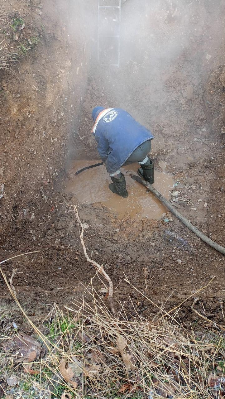 В Калининском районе города аварийная бригада в составе слесарей Александра Зозули, Андрея Черненко и Романа Руссу, а также машиниста экскаватора Михаила Ковалёва под руководством мастера Николая Чепы выполняет вскрытие теплового канала для дальнейшего выполнения ремонтных работ по замене аварийного участка теплотрассы.