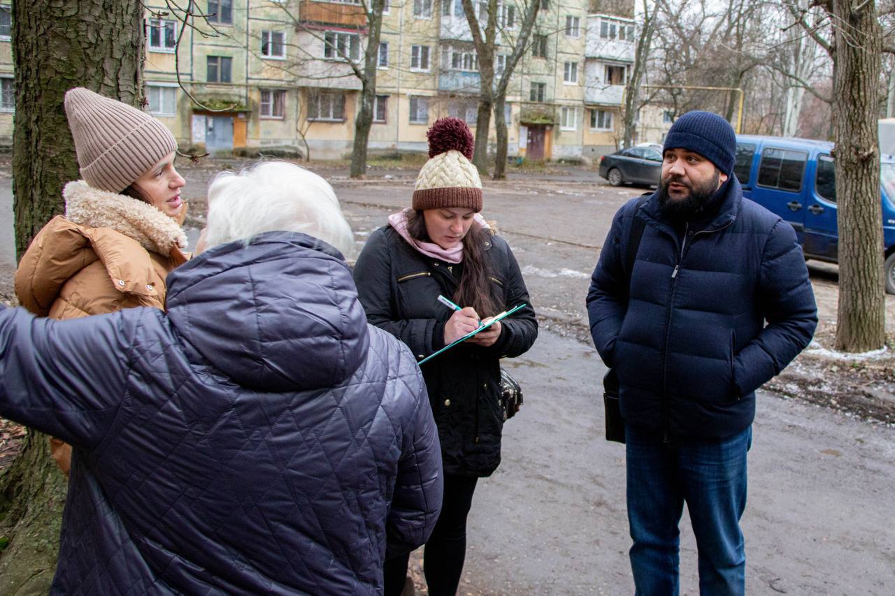 Георгий Селезнев провел встречу с жителями Калининского района Донецка. Граждане сообщили об аварийном состоянии подъездных козырьков, провале асфальта у входа одного из домов и отсутствии освещения между строениями.