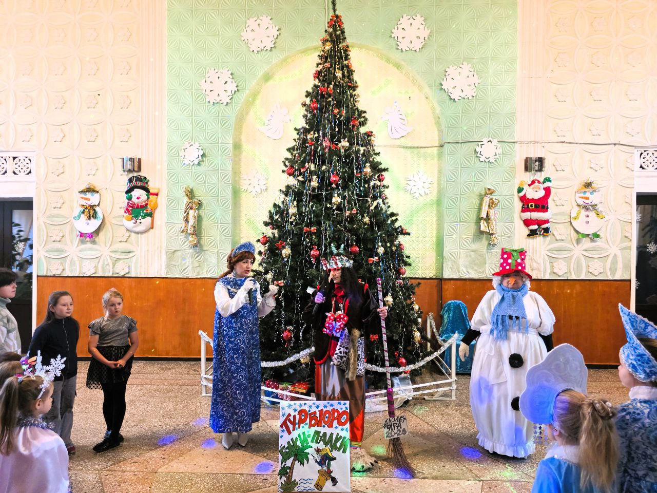 20 декабря 2025 года в МБУ «Клуб им. Пушкина г.о. Торез» состоялся новогодний утренник для детей и родителей «Новогоднее турагентство «Елки-палки». В этом году привычный порядок вещей нарушен. Вредная Баба Яга хитростью отправила Деда Мороза отдыхать на юг, решив сама распоряжаться новогодними чудесами. Но без доброго волшебника праздник грозит пойти не по плану — и вот тут начинается настоящее волшебство! Дети становятся непосредственными участниками событий. Вместе с Василисой и Снеговиком помогают бороться со «злыми» силами в лице Бабы Яги и, конечно же, становятся победителями. Дед Мороз и Снегурочка возвращаются к елочке вовремя и начинают настоящий праздник с играми, танцами, хороводом вокруг елки и, конечно, сладкими призами, предоставленными спонсором ЧП Тенишева.