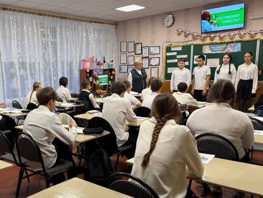 Рассказал обучающимся о сути совести, о важности жить по её голосу и совершать достойные поступки в повседневной жизни. Разобрали с ребятами примеры морального выбора и значимость личной ответственности перед семьёй, школой и обществом.