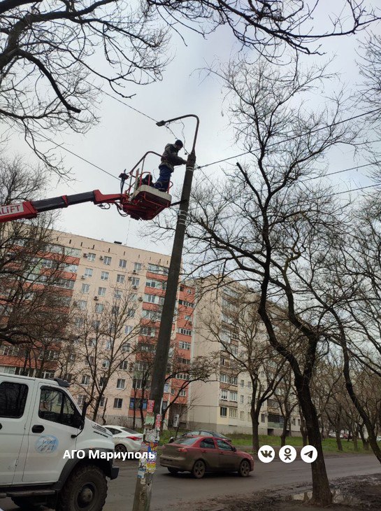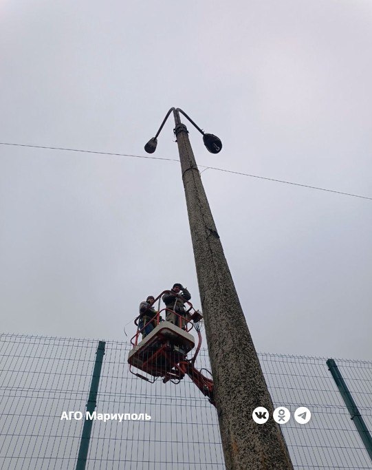 Сотрудники МУП «Мариупольгорсвет» с привлечением 8 единиц спецтехники смонтировали и отремонтировали 970 метров кабеля, установили 28 новых светильников и выполнили демонтаж 9 вышедших из строя фонарей.