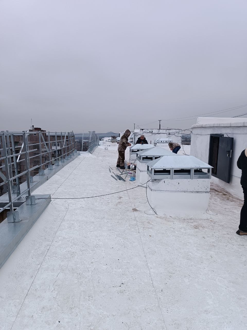На текущий момент рабочие проводят финальные работы: установку ограждений и колпаков на дымвентканалах.