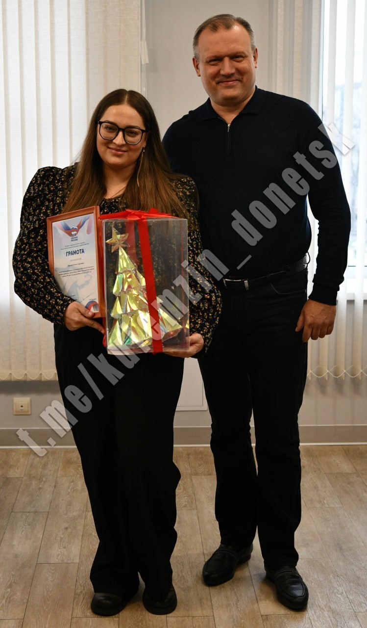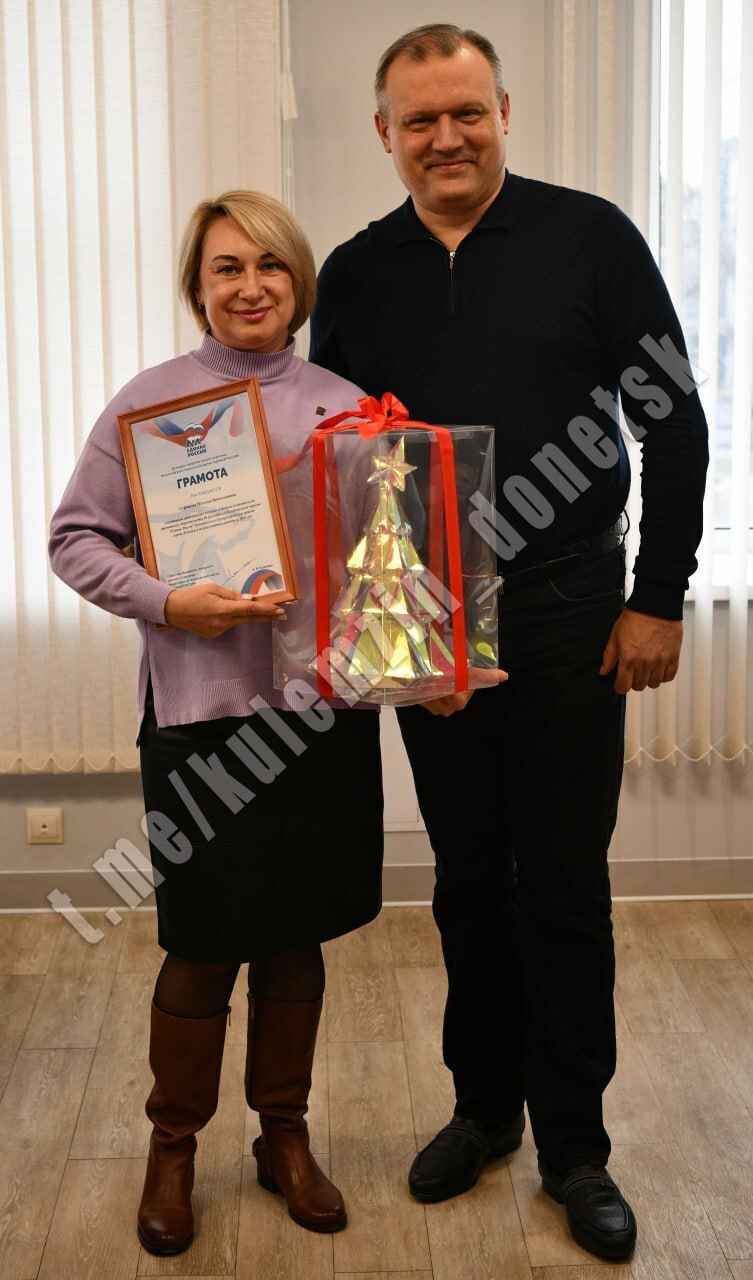 За высокую эффективность работы, активное участие в реализации партийных программ и проектов, значительный вклад в укрепление авторитета партии «Единая Россия» на территории городского округа Донецк и по результатам работы за IV квартал 2025 года вручил знамя Активу Управы Петровского внутригородского района.