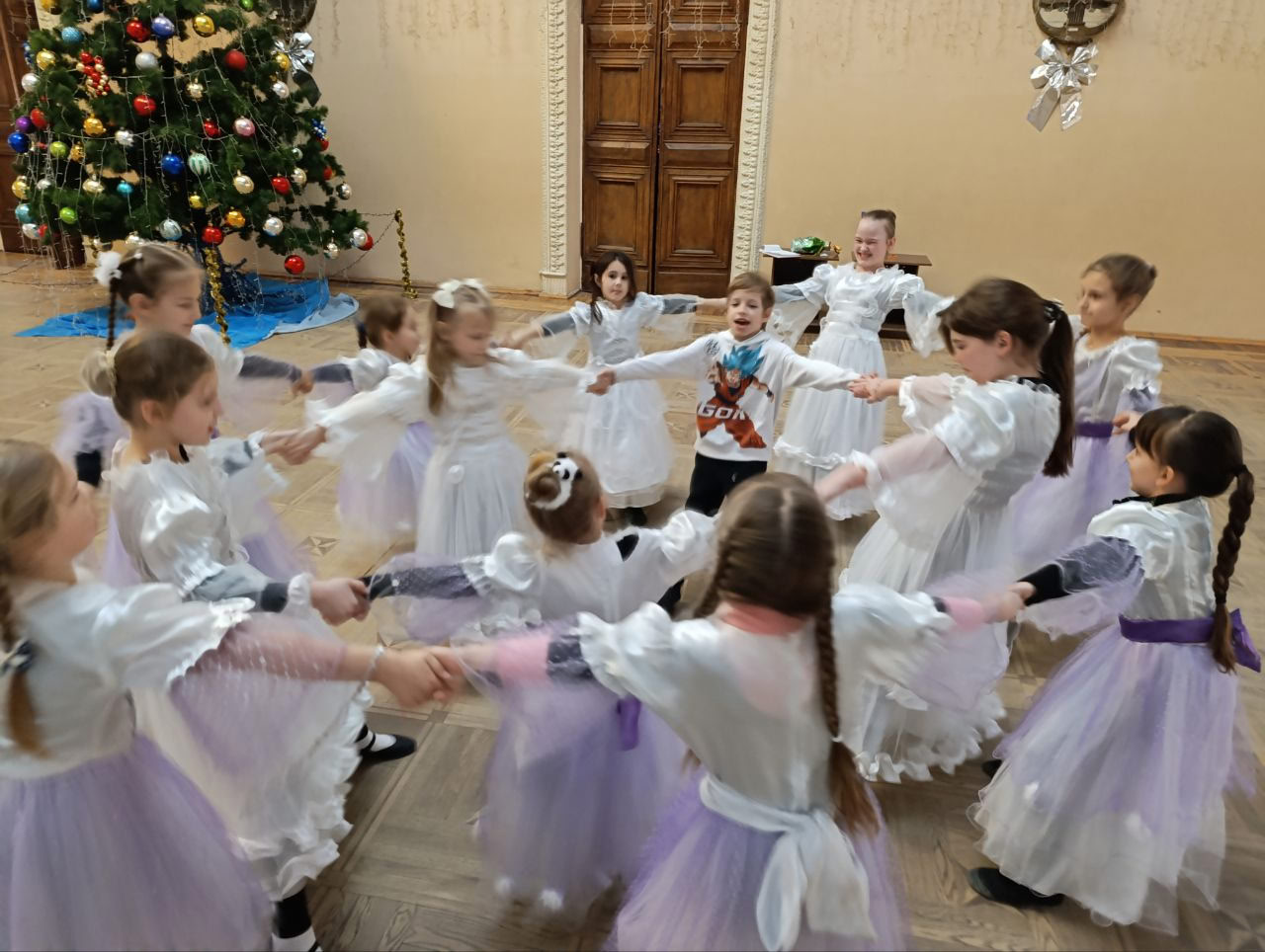 22 декабря детская студия «Калинка» отметила приближение Нового года хороводами во Дворце культуры им. Ленина город Комсомольское. Мероприятие посвящено духовно-нравственному воспитанию.
