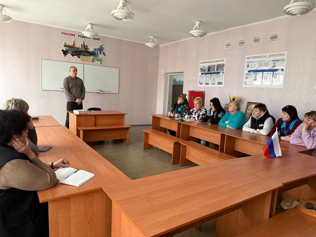 В ходе встреч присутствующие обсудили вопросы ремонта дорог и графика движения общественного транспорта в пос. Комарова, прохождения отопительного сезона и вывоза ТКО
