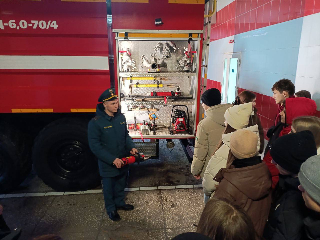 В ходе экскурсии школьникам был показан мастер-класс по надеванию боевой одежды и снаряжения. На мастер-классе они отработали практические навыки быстрого и правильного облачения в защитные костюмы, которые носят пожарные. Этот навык особенно важен в чрезвычайных обстоятельствах.