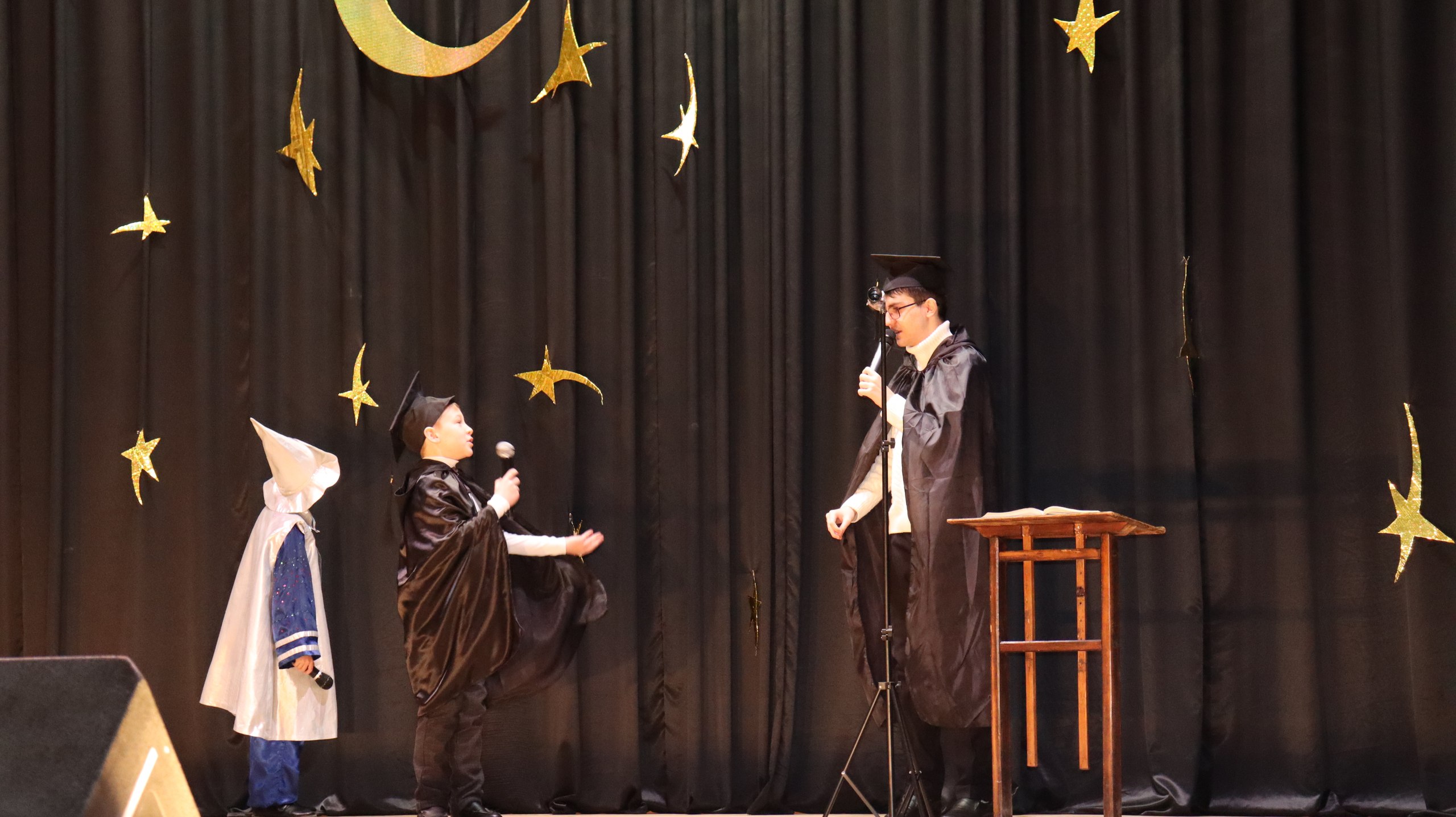 Зрители – ученики младших классов школ №90 и №59, воспитанники детского сада №1 и, конечно же, самые преданные поклонники, родители, – с первых мгновений оказались в самом сердце сказочного вихря. На сцене кружились юные звездочки, забавлялись спортивные кикиморы, а трусливые разбойники играли в "Ку-ку". И в этой веселой кутерьме проказник Домовенок Кузя умудрился украсть звезду с неба! А юный Звездочет самоотверженно доказывал своим старшим коллегам, что и он способен на великие взрослые дела! Восторженная реакция зала на каждую сцену говорила о том, что этот творческий подарок ко Дню святого Николая пришелся по душе всем!