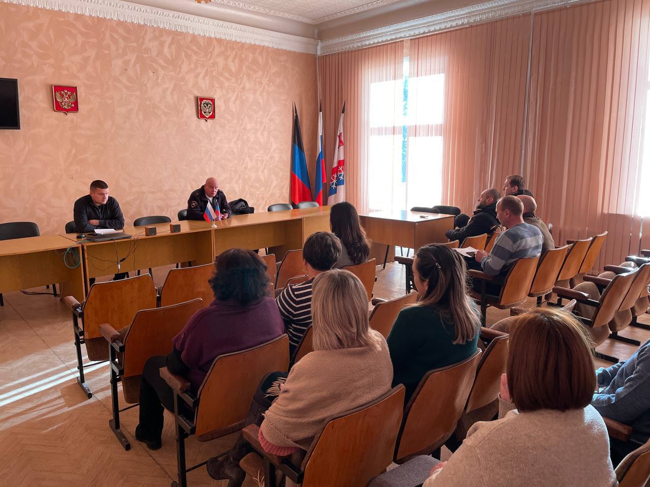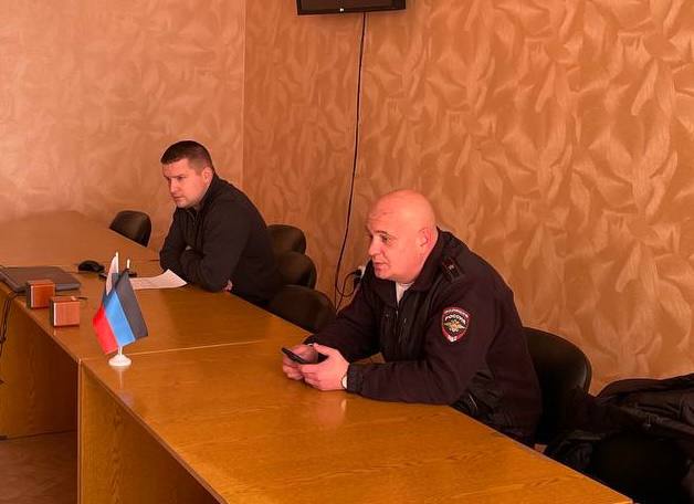 Заместитель главы муниципалитета, помощник исполнительного секретаря местного отделения партии "Единая Россия" Владимир Судиловский и представитель ОГИБДД ОМВД России "Снежнянский" МВД по ДНР Михаил Ковляшенко провели встречу для партийцев в рамках партпроекта "Безопасные дороги".