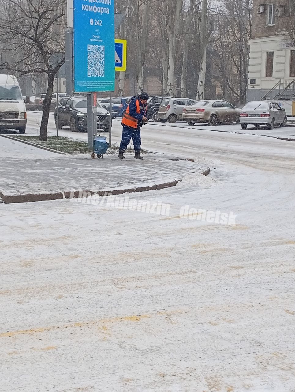 Сотрудники предприятия «Дорожное ремонтно-строительное управление» приступили к уборке снега во всех районах Донецка.