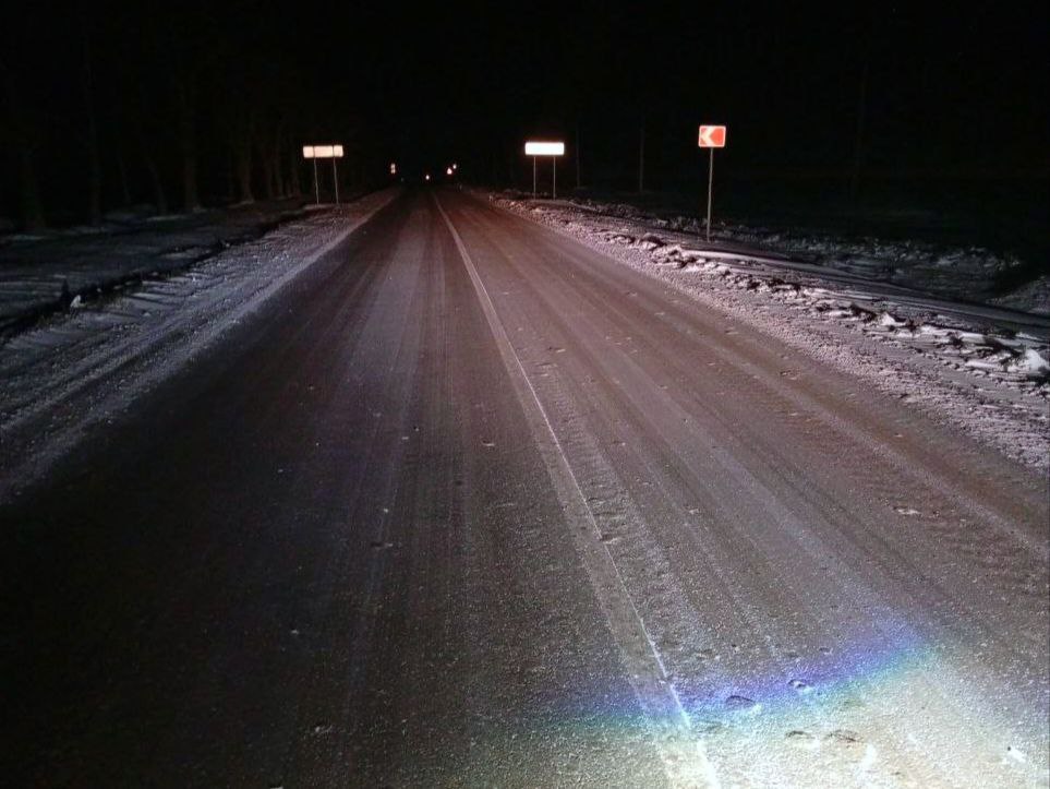 На автодороге Доля-Еленовка в работе 4 КДМ, производится обработка покрытия песко-соляной смесью и очистка.