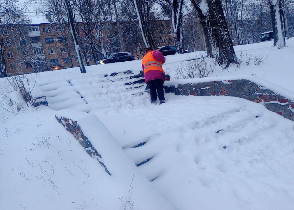 Специалисты Единого регионального фонда МКД в Куйбышевском районе продолжают расчистку дворовых территорий от снега, обработанные дорожки посыпаются песчано-солевой смесью.