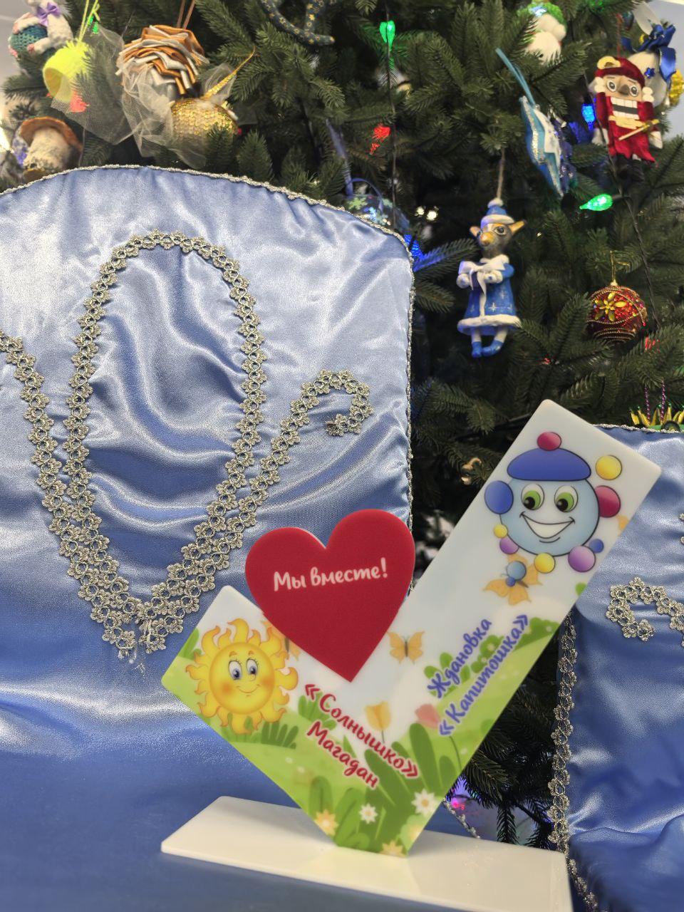 Юные ждановцы подготовили воспитанникам магаданского детсада № 15 символическую табличку, в которой объединились символы обоих детских садов.
