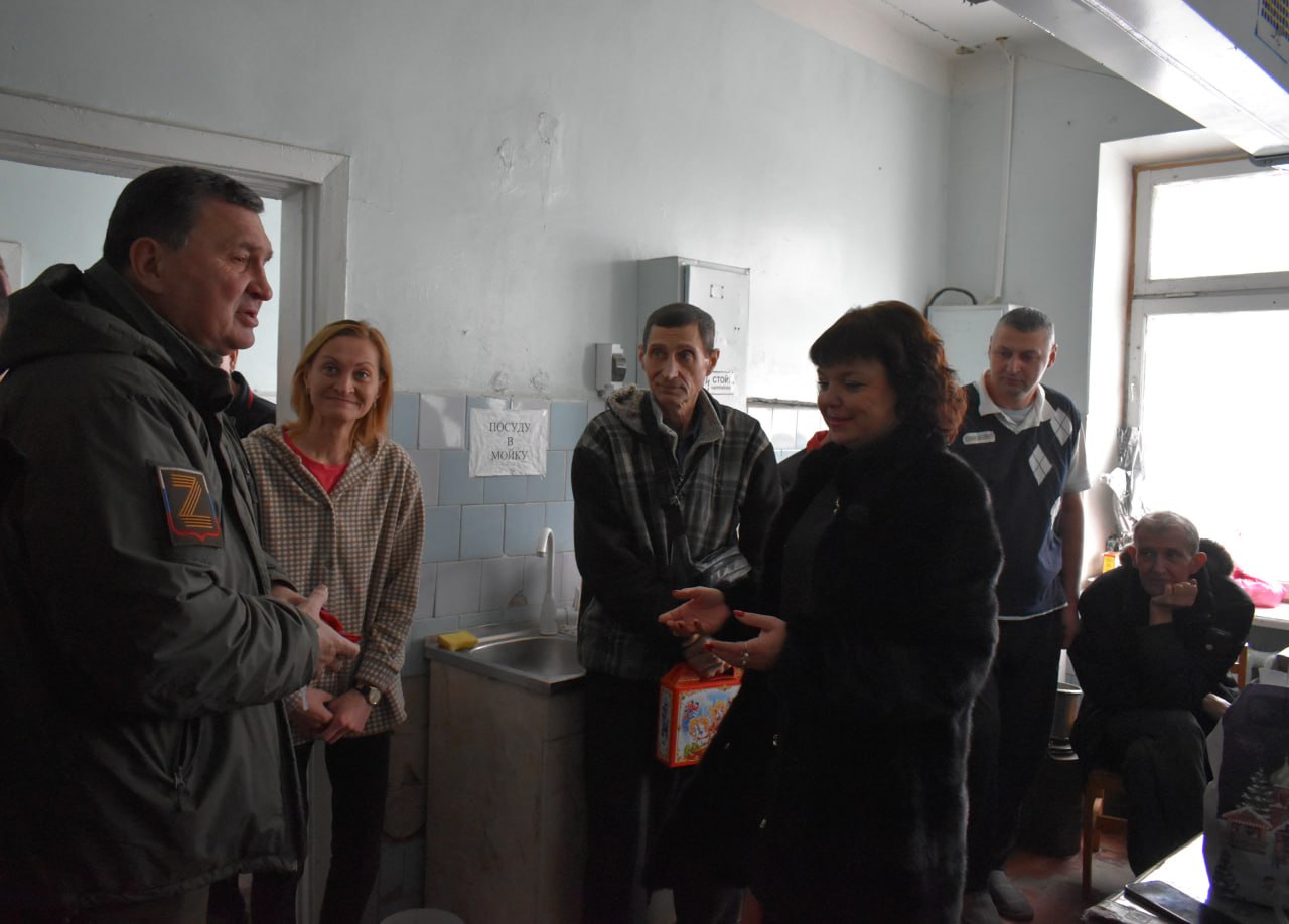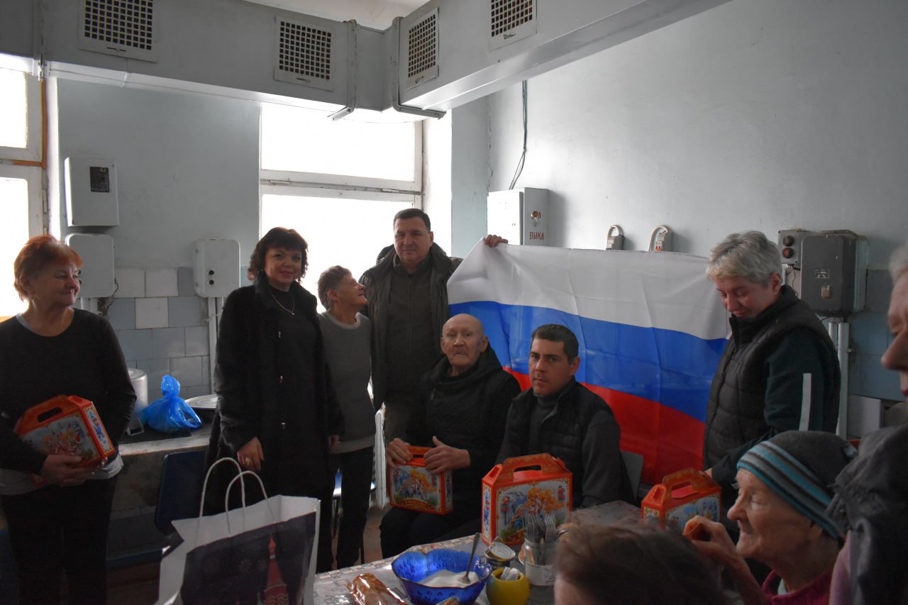С коллегами поздравили граждан, прибывших с освобождённых территорий с наступающим Новым годом: привезли новогодние подарки, фрукты.