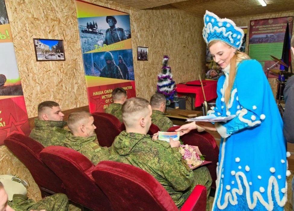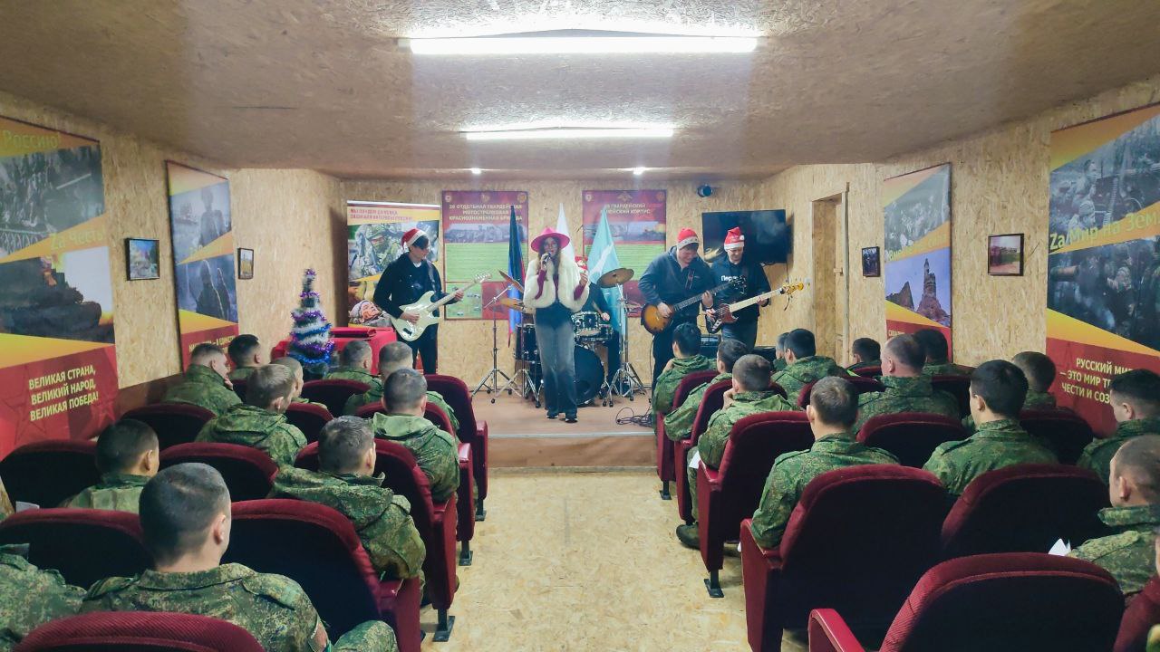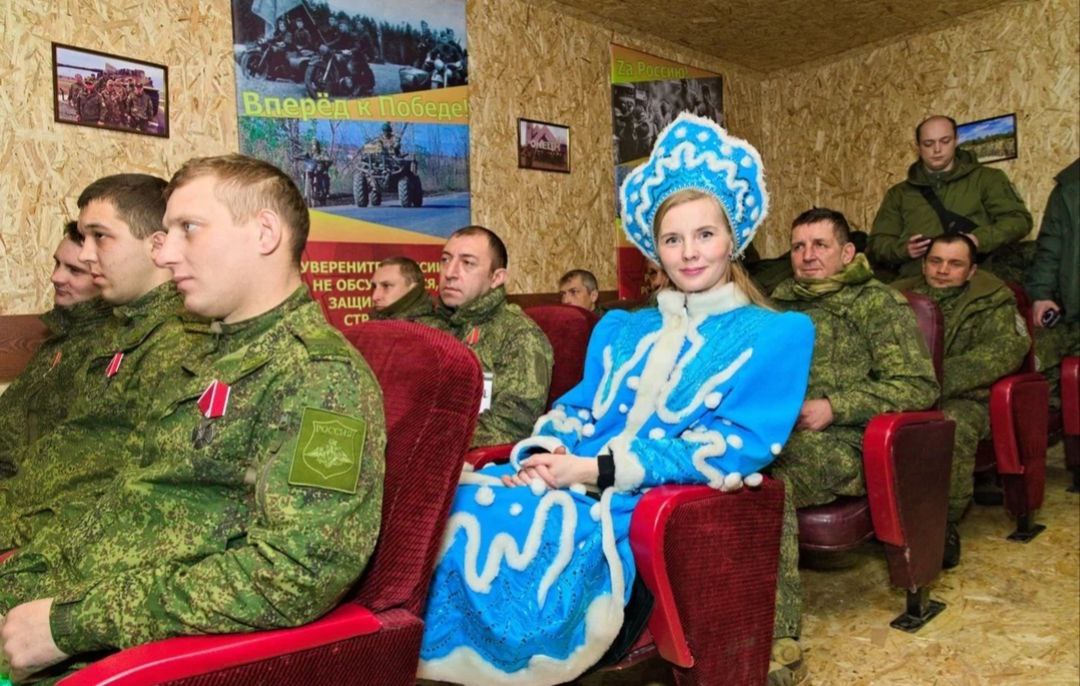В рамках проекта "Музыка во имя мира", по инициативе и при личном участии Председателя Совета женщин Куйбышевского района г. Донецка, члена Общественного Совета муниципального округа Донецк, директора ДК им. Т. Г. Шевченко Натальи Такташвой, которая в этот день выступила в роли самой настоящей Снегурочки , мы поздравили военнослужащих в одной из воинской частей.