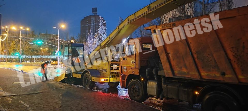 Работники муниципального предприятия «Дорожное ремонтно-строительное управление» продолжают работы по уборке снега во всех районах Донецка.