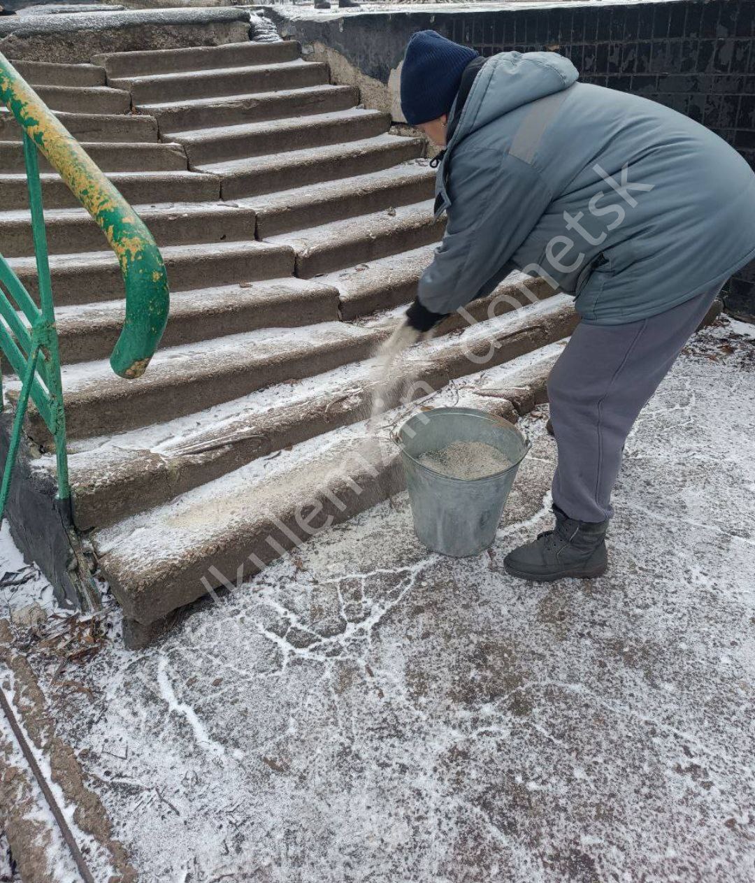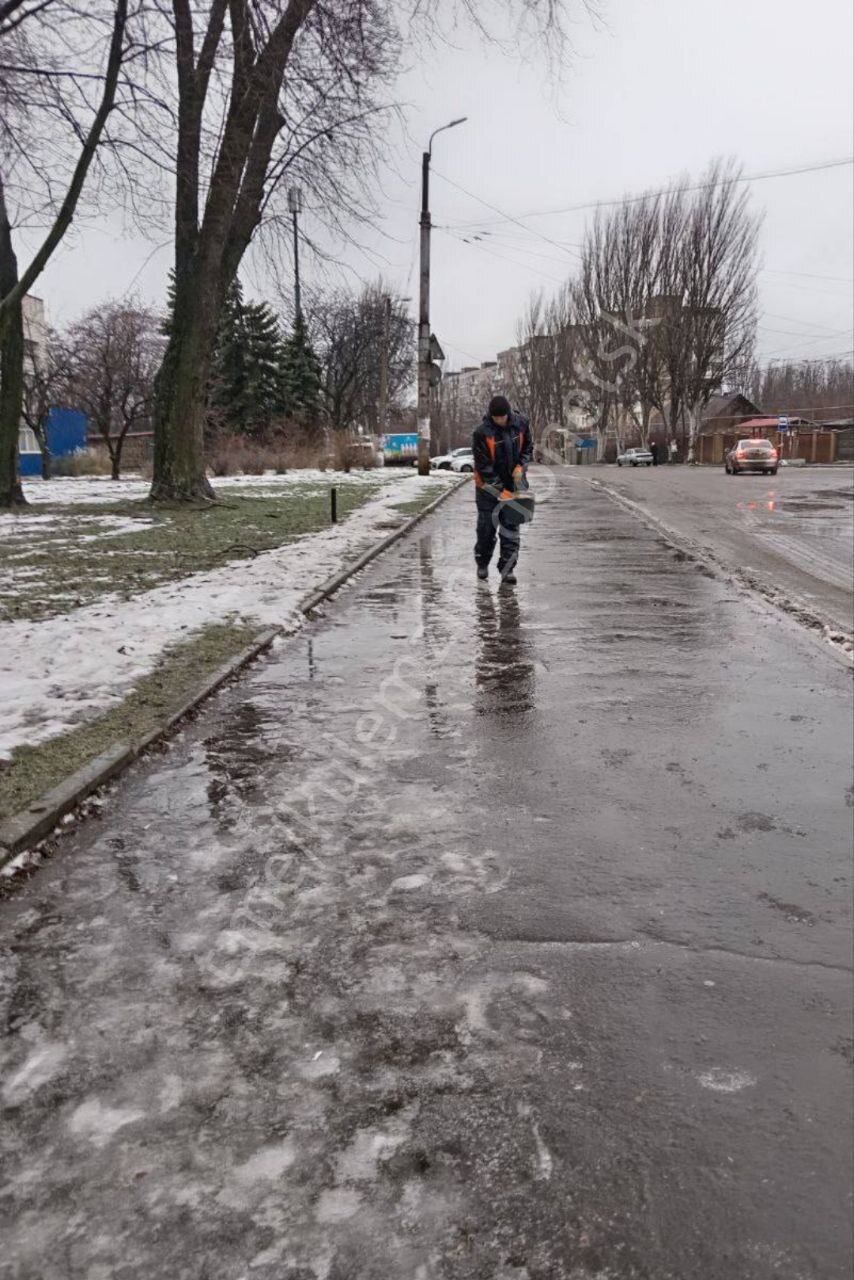 Борьба с гололёдом на улицах продолжается.