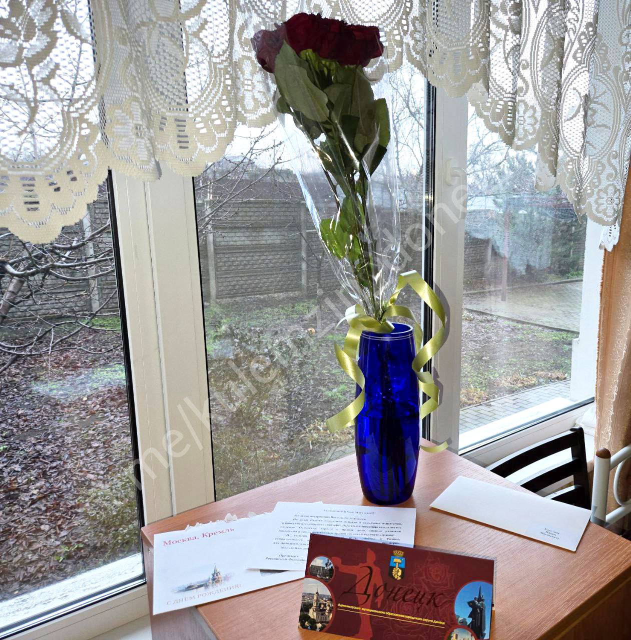 Юрию Матвеевичу вручили поздравительные письма от Президента Российской Федерации Владимира Путина и главы администрации городского округа Донецк Алексея Кулемзина.