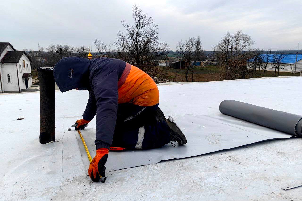 Старый рубероид заменили полимерной мембраной – долговечным гидроизоляционным материалом, обеспечивающим высокую надежность покрытия и его абсолютную герметичность.