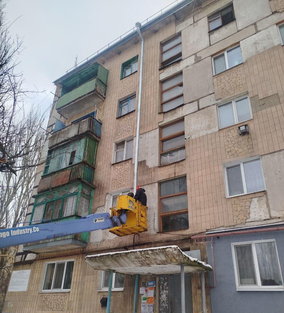 Нижегородские подрядчики продолжают ремонт кровли многоквартирного дома в Харцызске