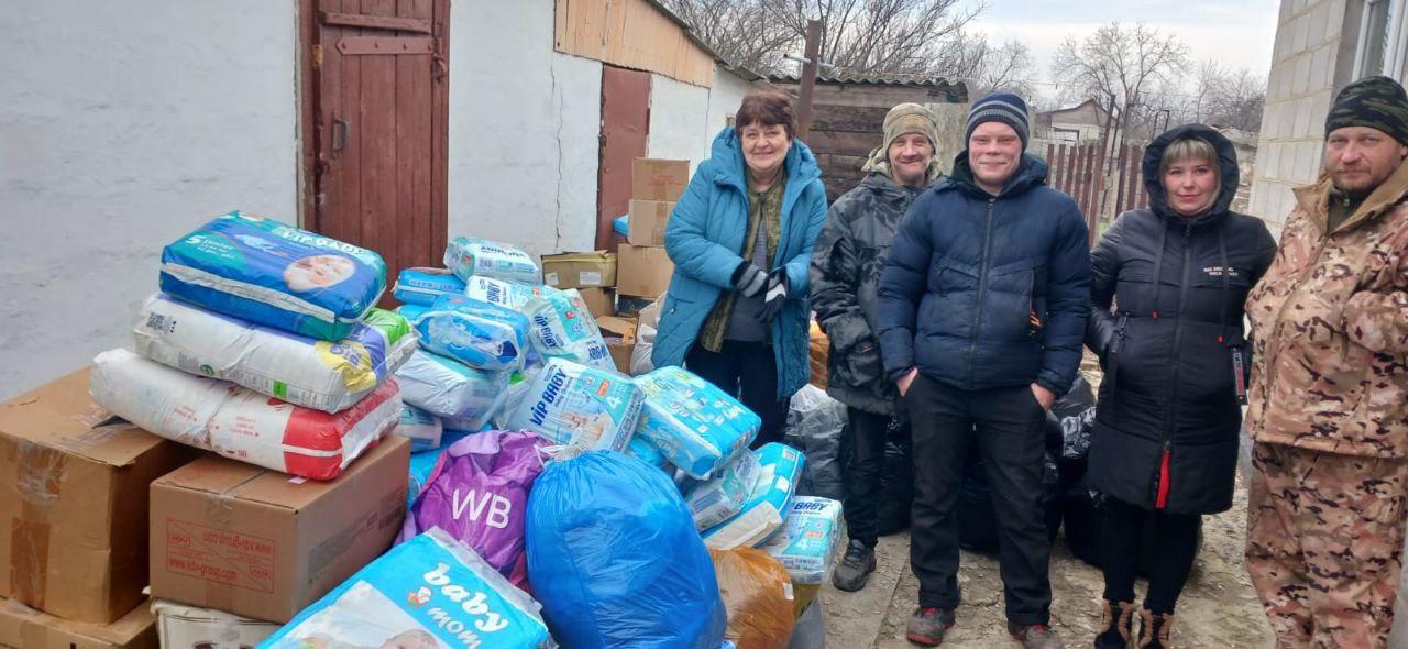 Волонтеры группы «Za Наших» передали жителям поселков Новотроицкое и Ольгинское одежду для детей и взрослых, средства гигиены, а также сладкие подарки для детей — всего около 1 тонны.