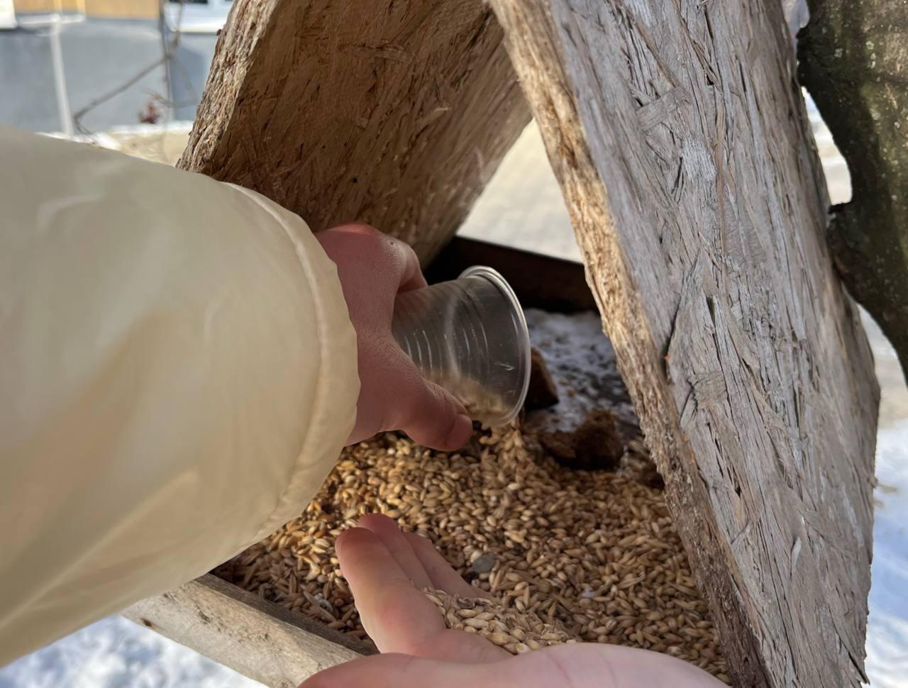 Сергей приняли участие в акции «Покорми птиц и бездомных животных зимой» и рассыпали по кормушкам на школьном дворе зерно и хлеб для наших пернатых друзей.