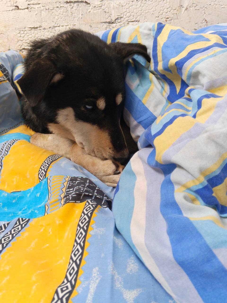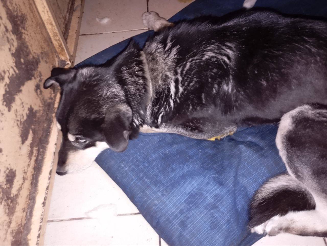 В приюте собаке оказали необходимую помощь. Сейчас её состояние в норме. Собака оказалась молодой девочкой с голубыми глазами. На ней был ошейник с карабином. Возможно, хозяева в поиске своей любимой питомицы.