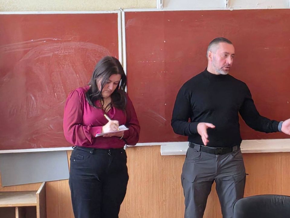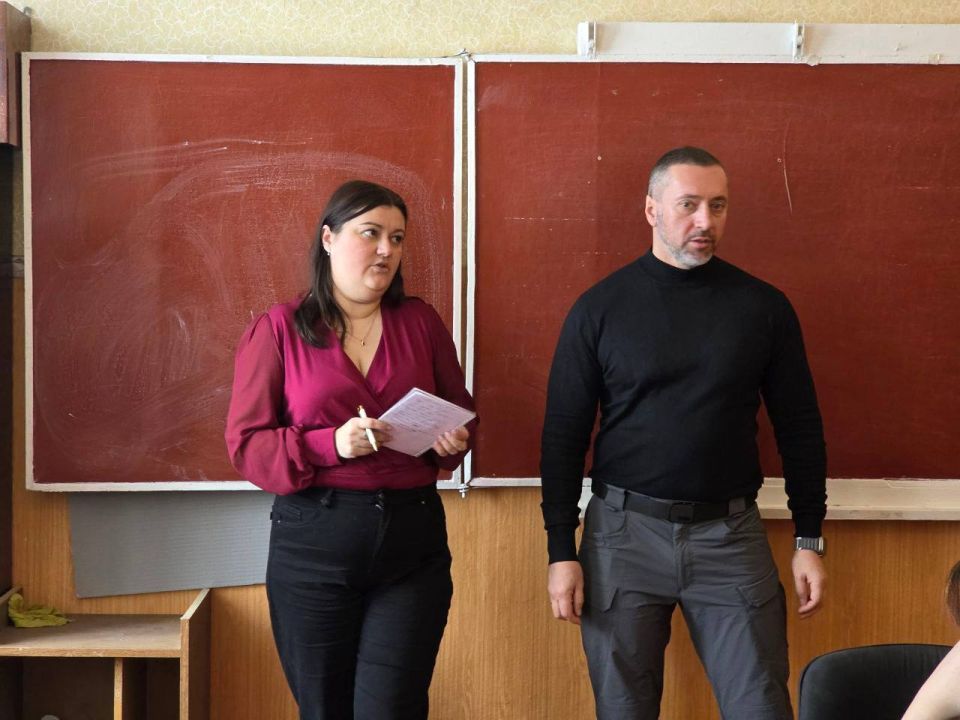 Марина Каплянок совместно с Юрием Афендиковым провели встречу с трудовым коллективом школы № 91 в Макеевке.
