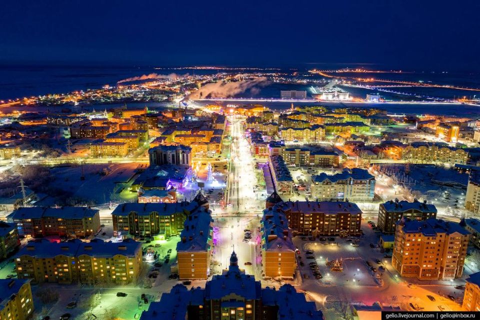 Первое фото- это ночной Нуук в Гренландии. Второе-российский Салехард. Оба города находятся на 64-м градусе северной широты. При этим средняя температура в январе в Нууке -7, а на Ямале -28. Но первый выглядит как деревня, а второй светится как Лас-Вегас. Может поэтому Трамп так переживает за Арктику? Настоящий Север бывает только русским.