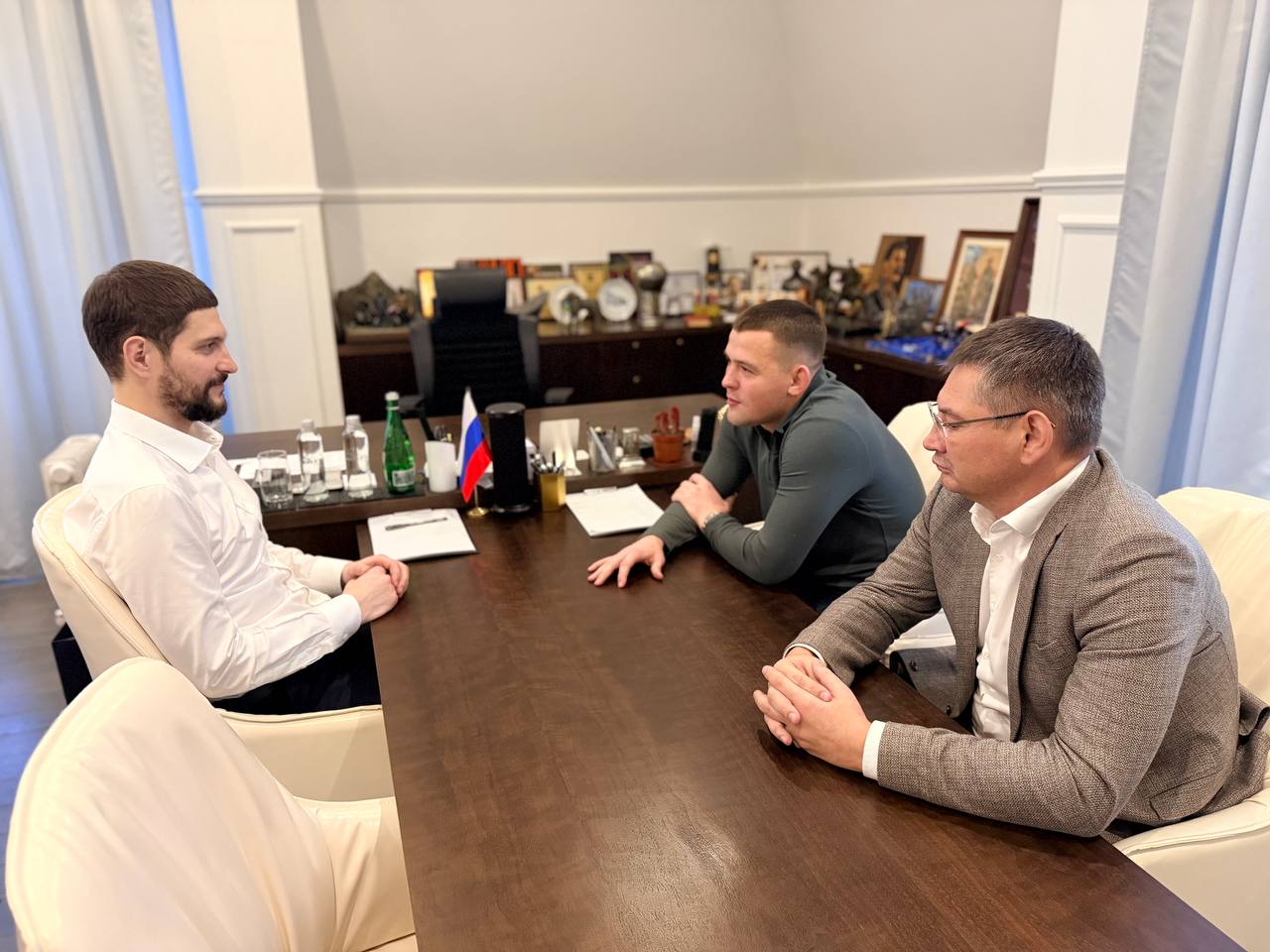 Сегодня провёл рабочую встречу с президентом Федерации спортивной борьбы Республики Мордовия Сергеем Сушковым и заслуженным мастером спорта, Чемпионом мира и Европы по греко-римской борьбе Артёмом Сурковым.