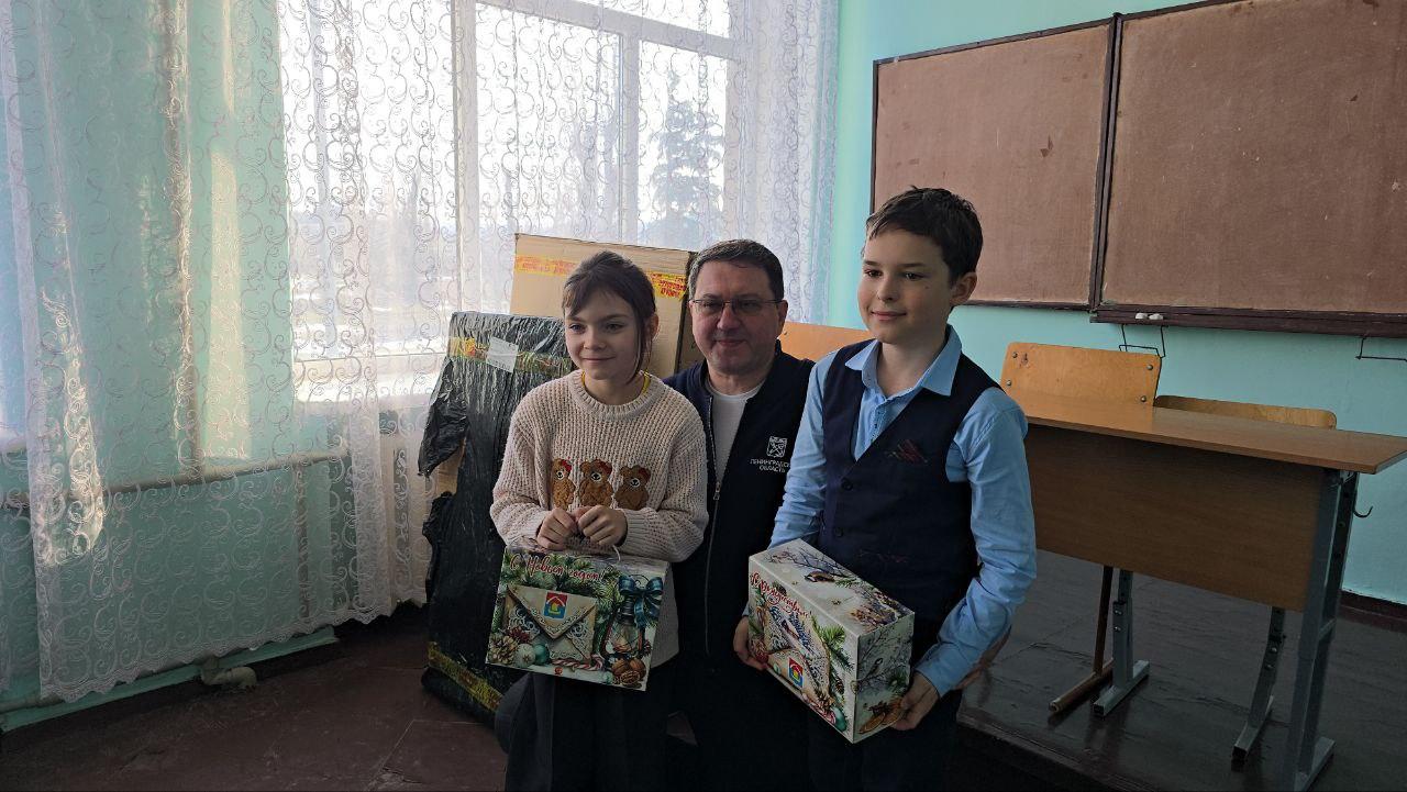 Подарки вручили ученикам школы № 13 Юнокоммунаровска и детям в поселках Александровское, Булавинское и Ольховатка.